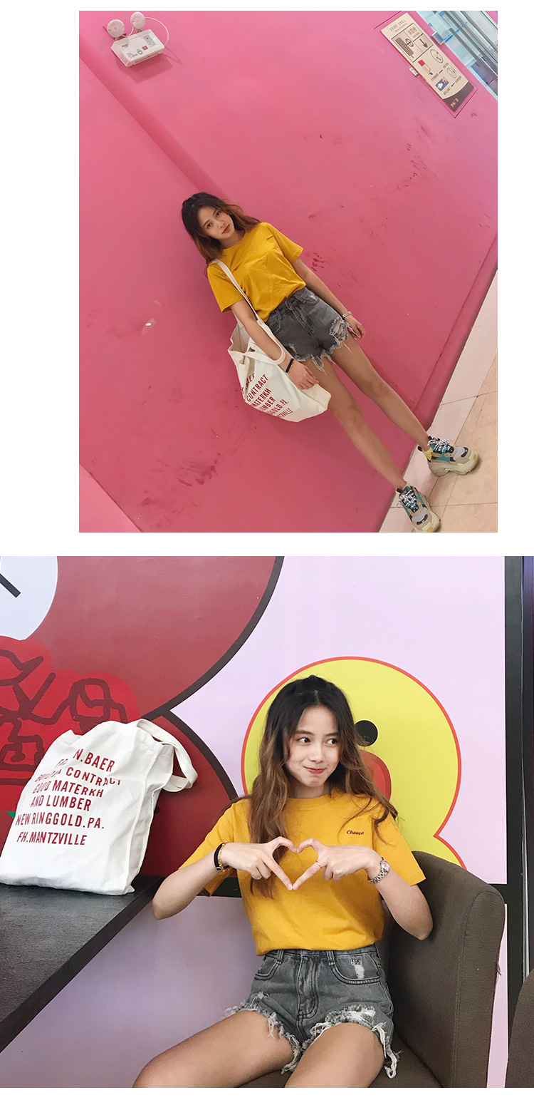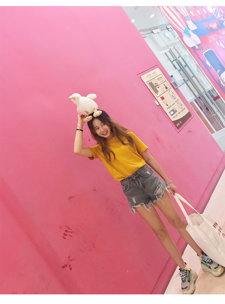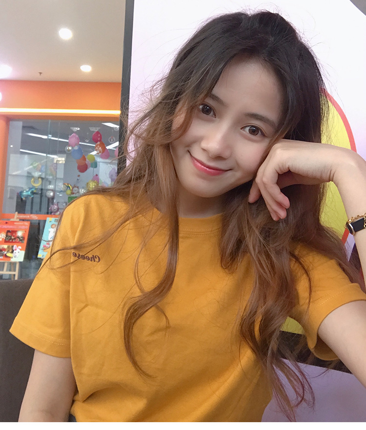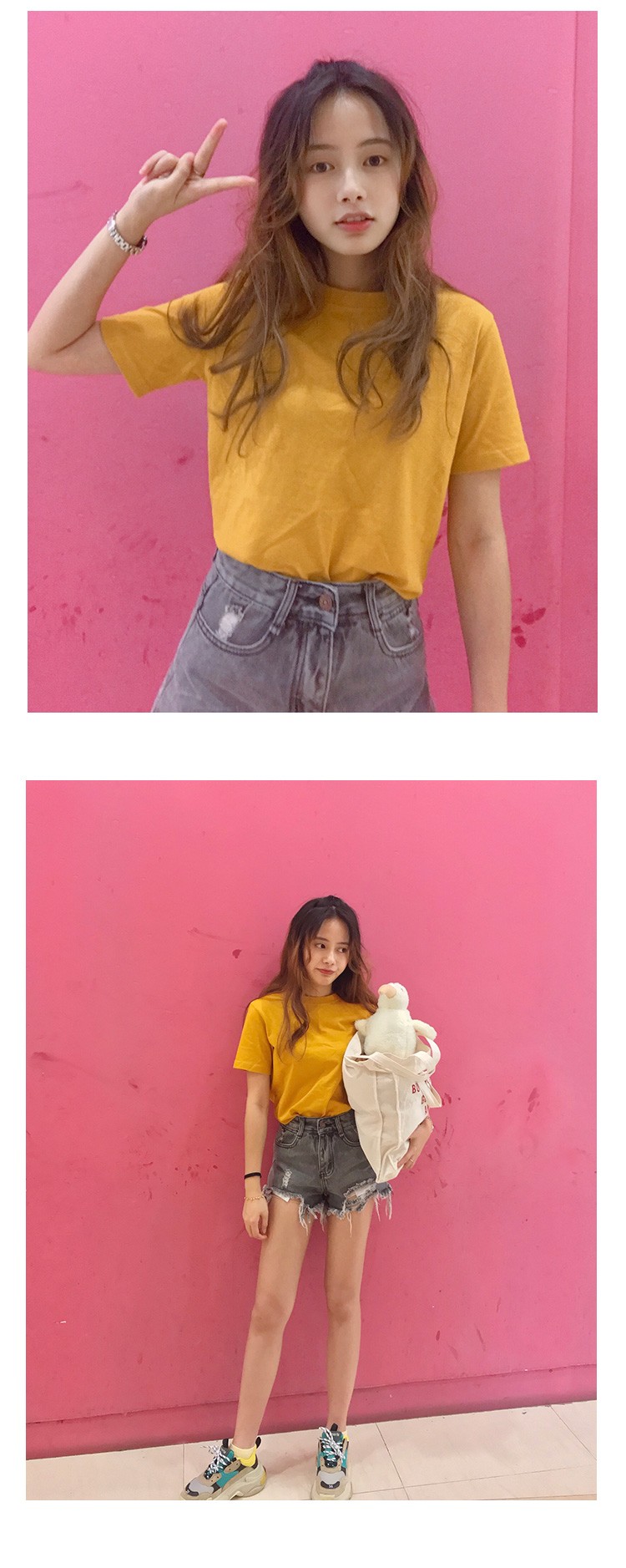 這款T恤顏色有點偏姜黃色的,顯白襯膚色。白皮、黃皮、稍微有點黑的。都可以穿哦!