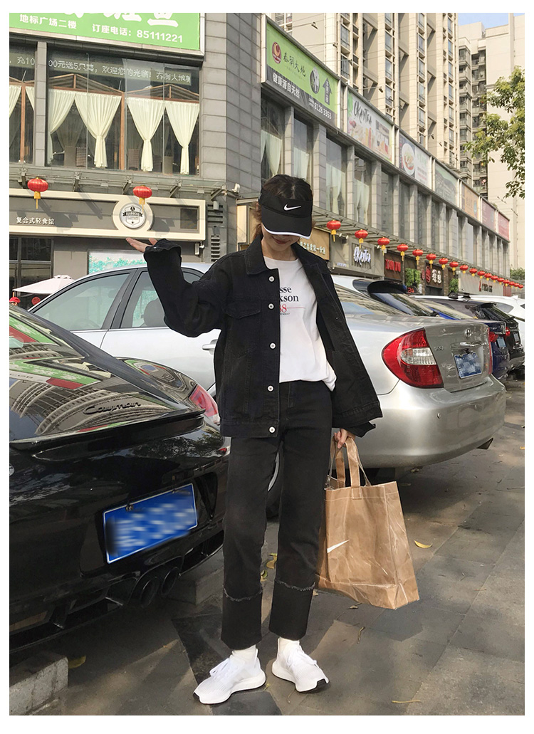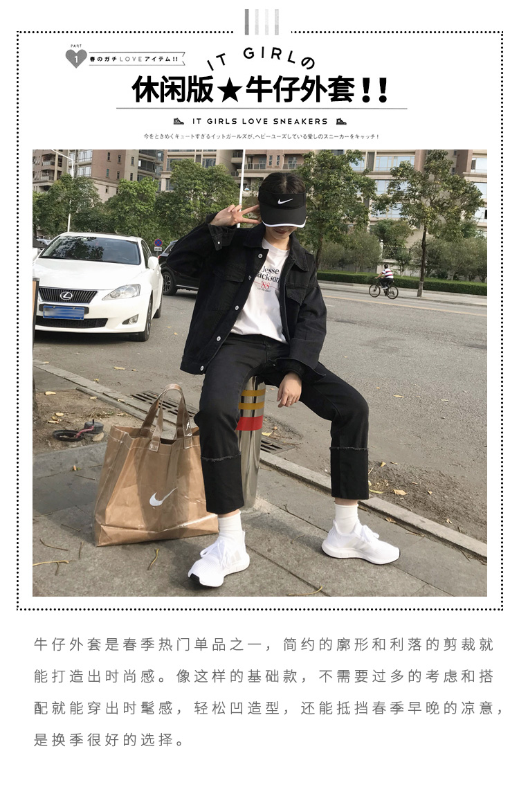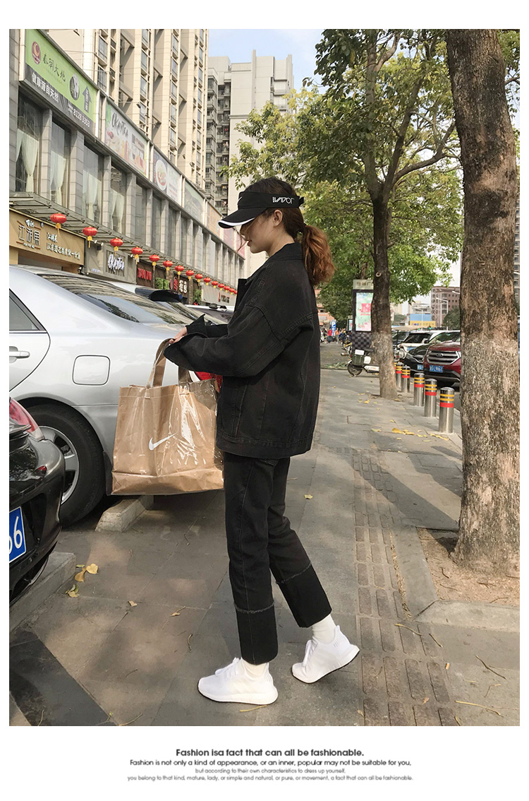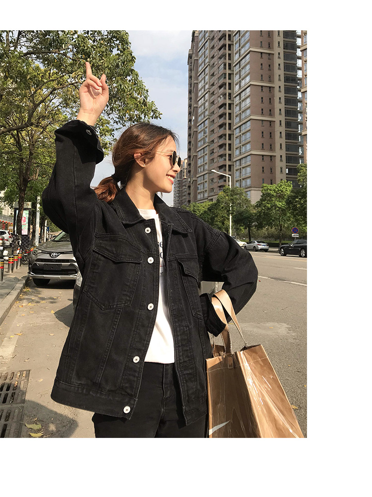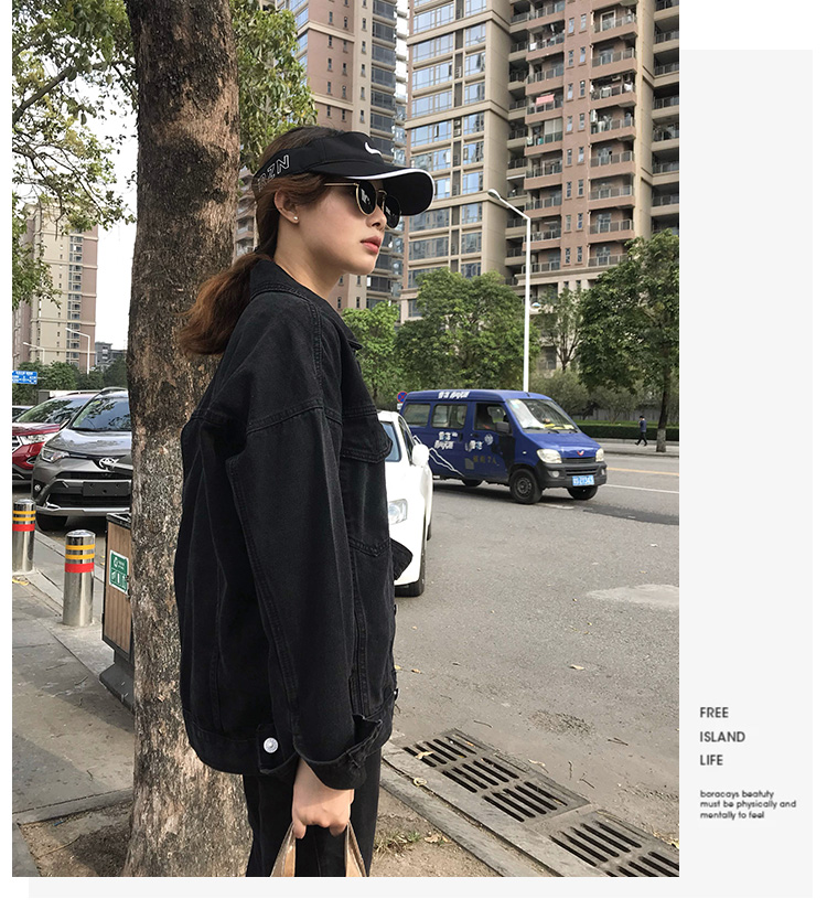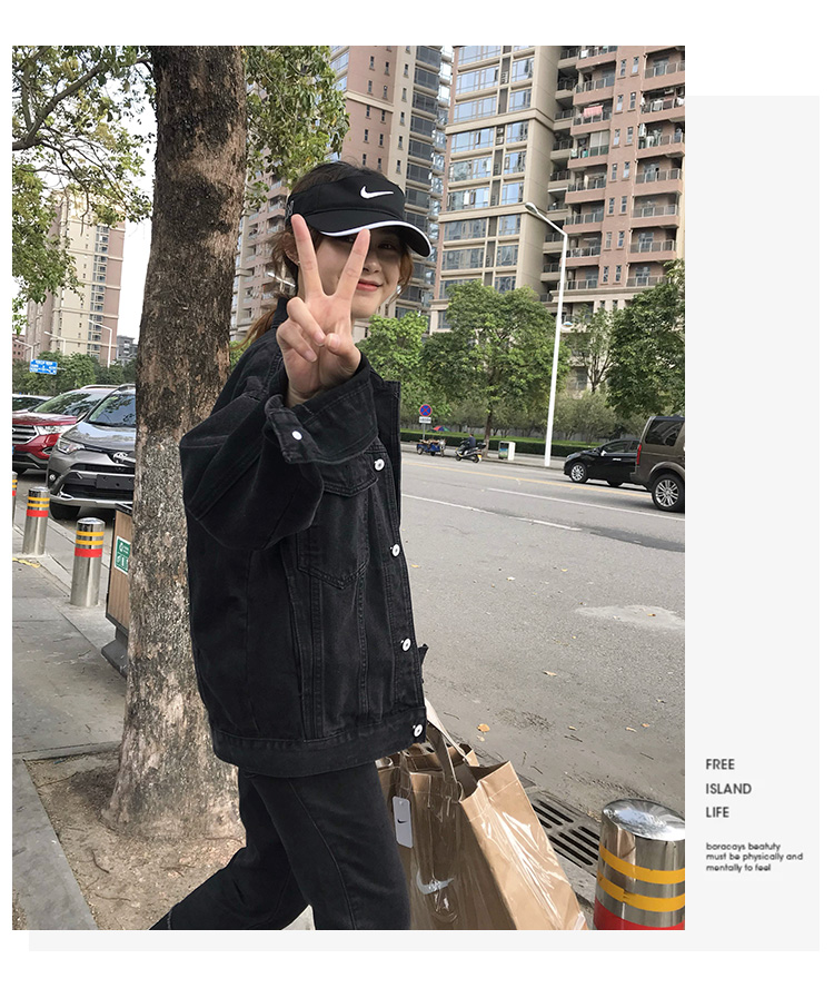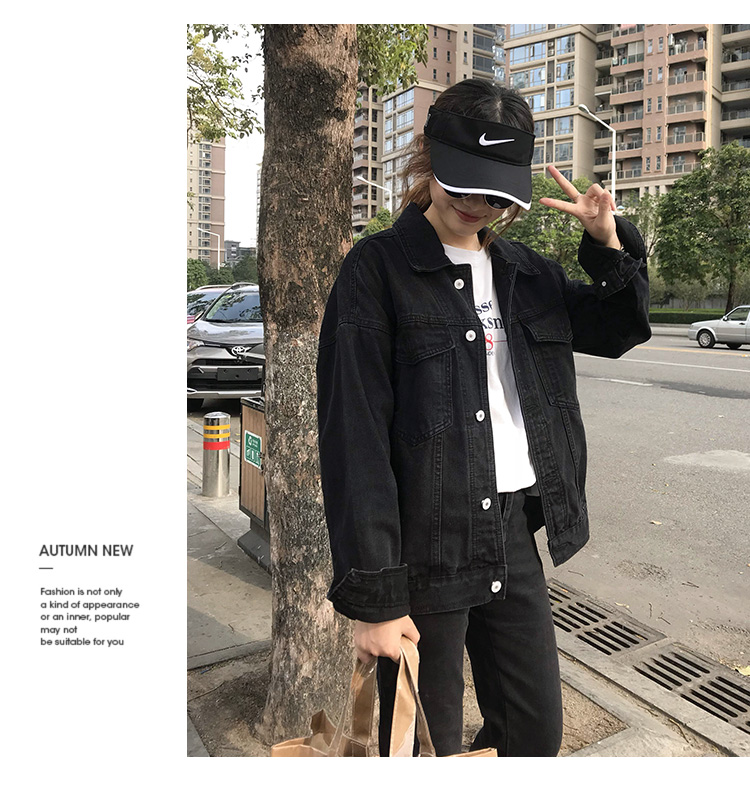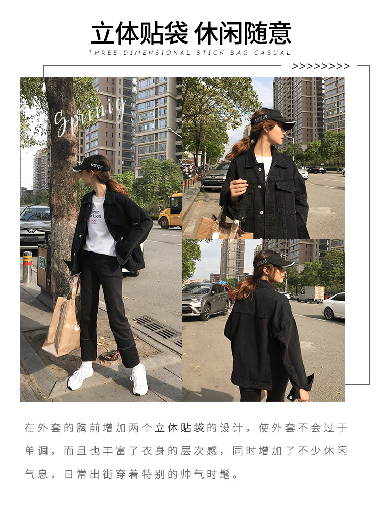 虎牙犬牙 2019春秋新款韓版學生bf港風寬松百搭潮黑色牛仔外套女1入