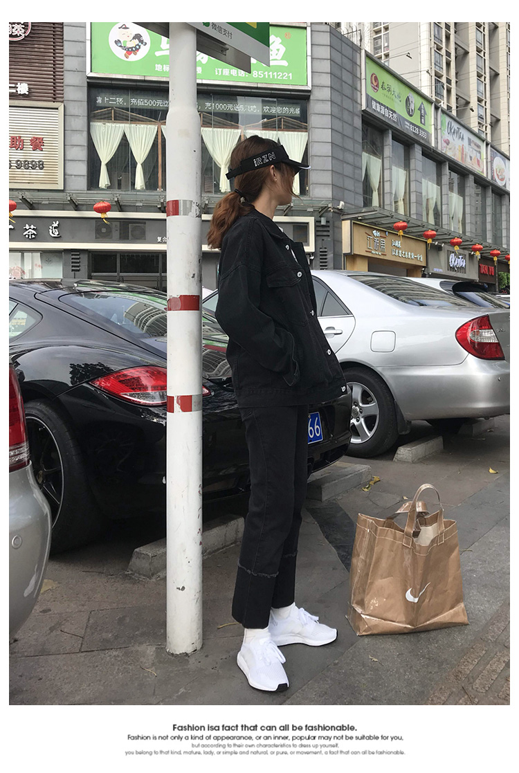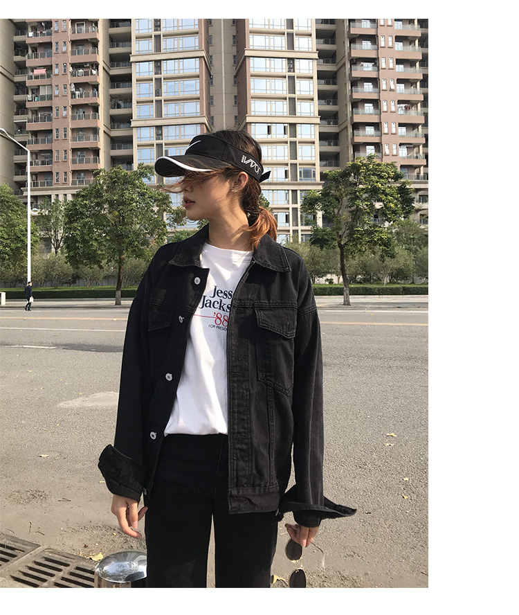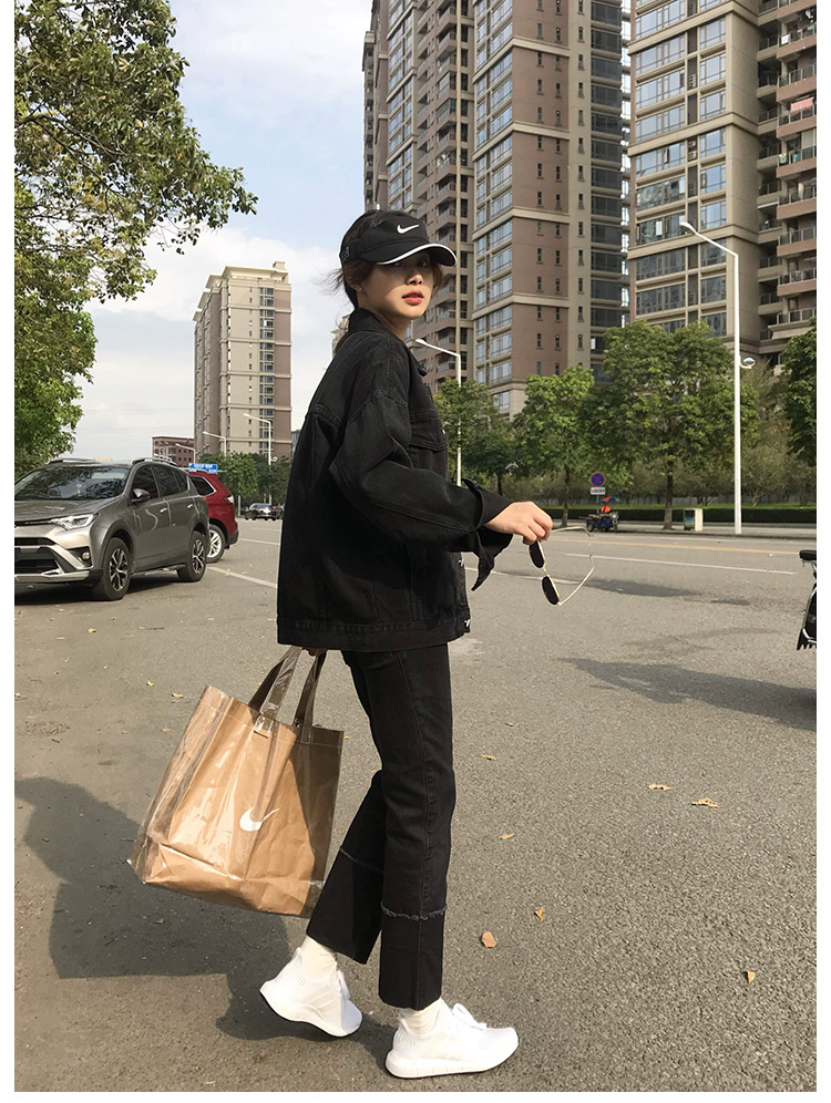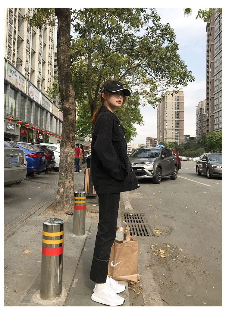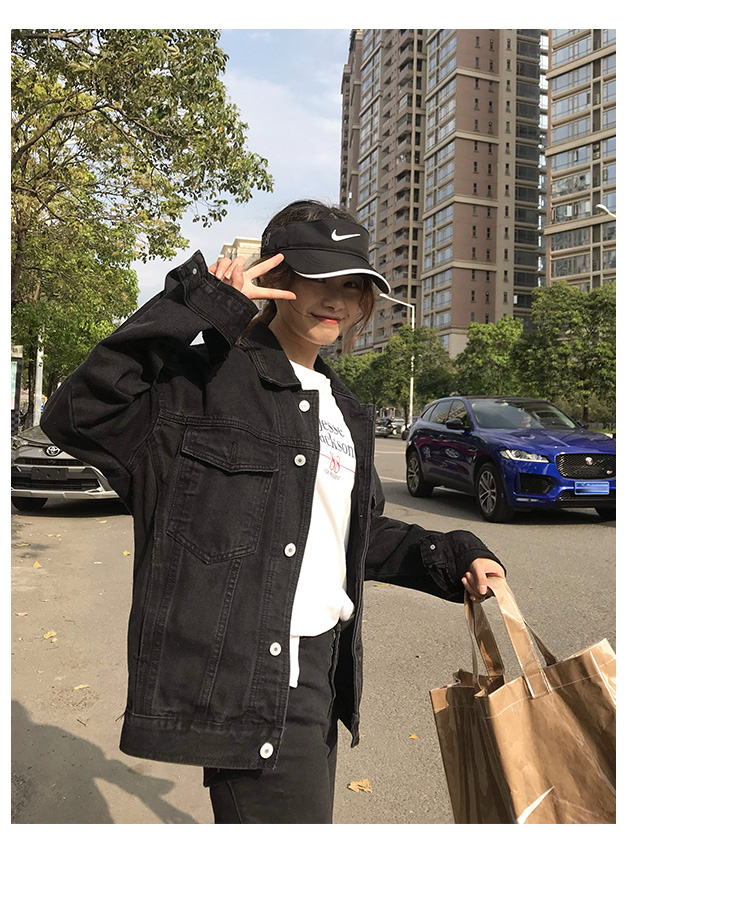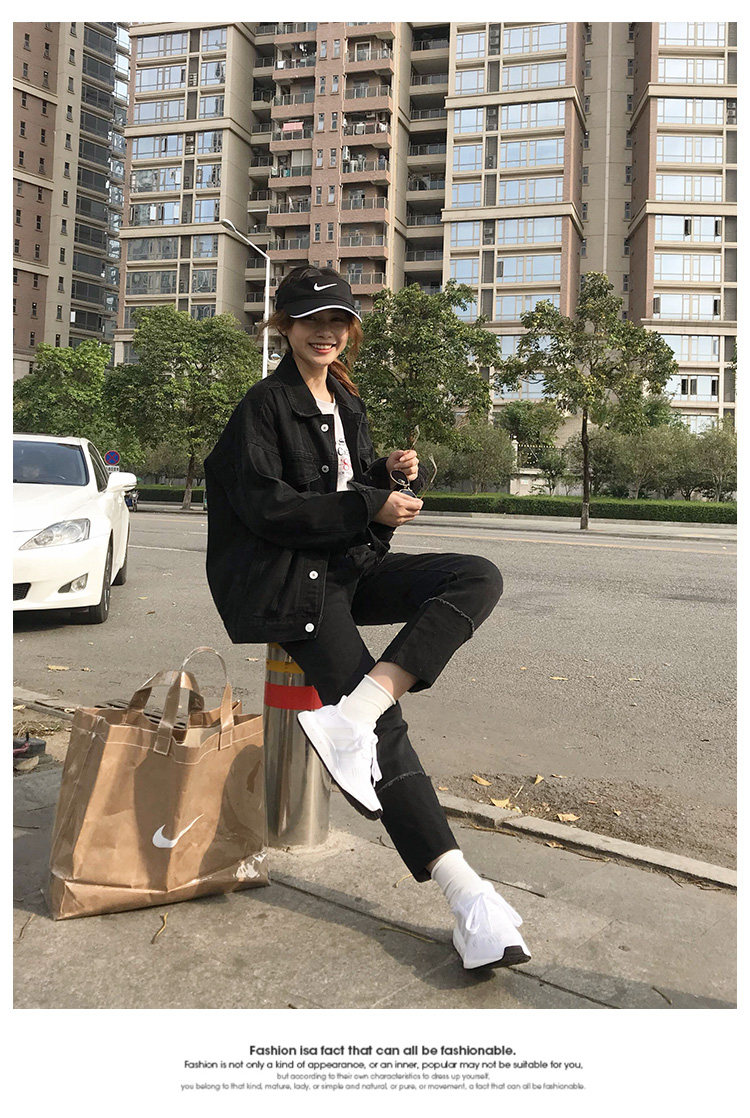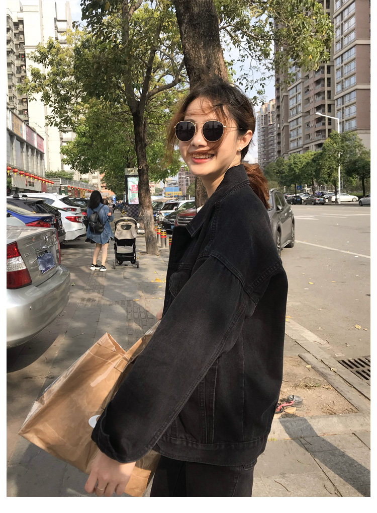虎牙犬牙 2019春秋新款韓版學生bf港風寬松百搭潮黑色牛仔外套女1入