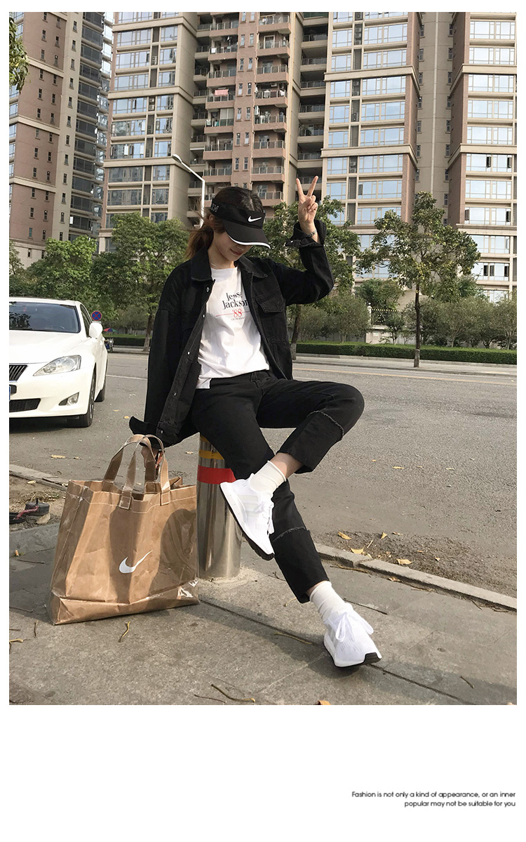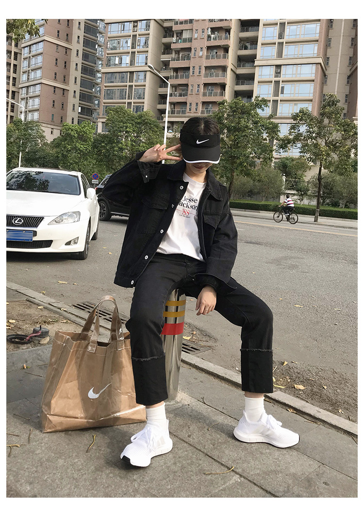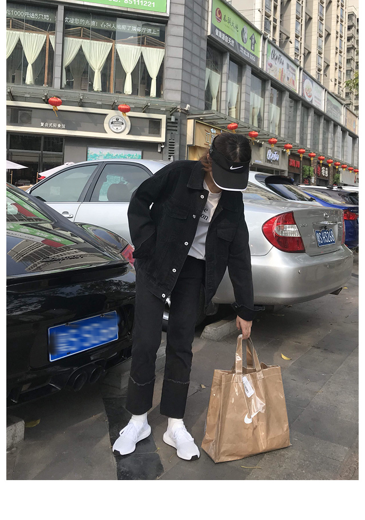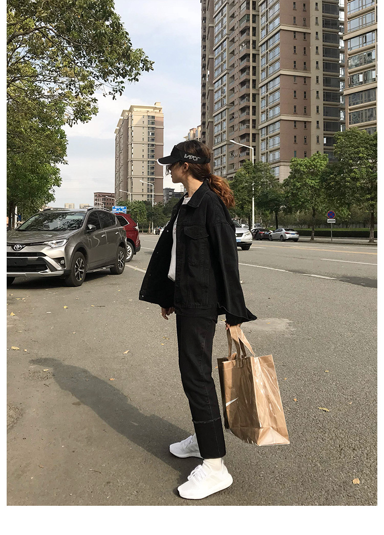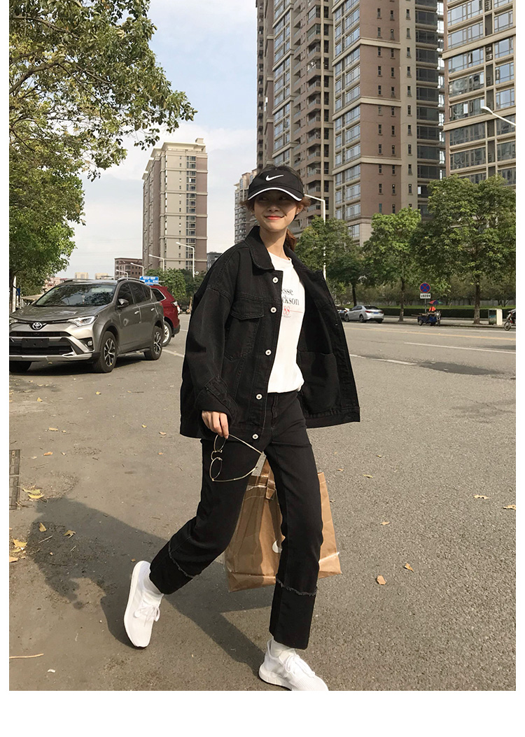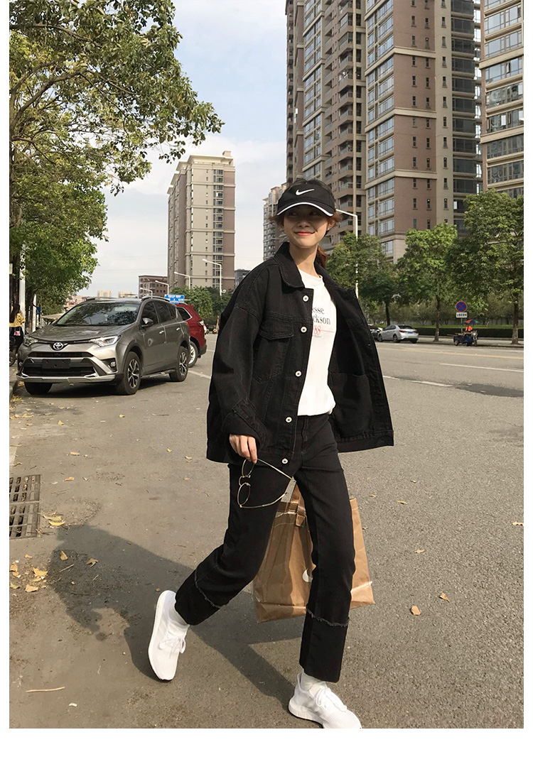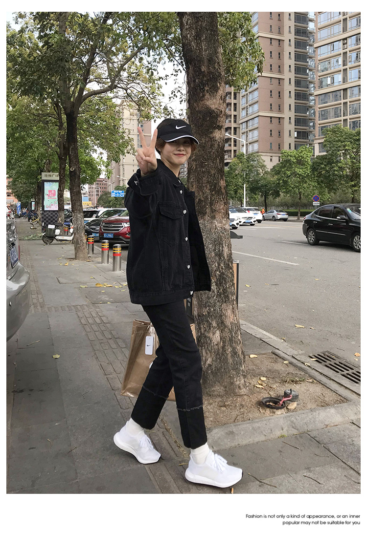 虎牙犬牙 2019春秋新款韓版學生bf港風寬松百搭潮黑色牛仔外套女1入