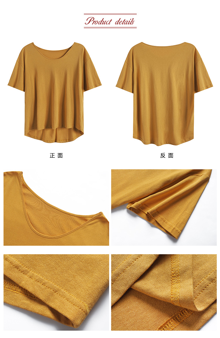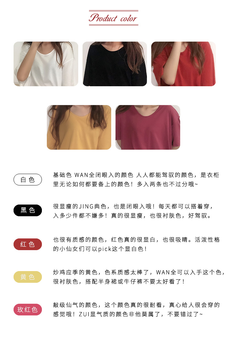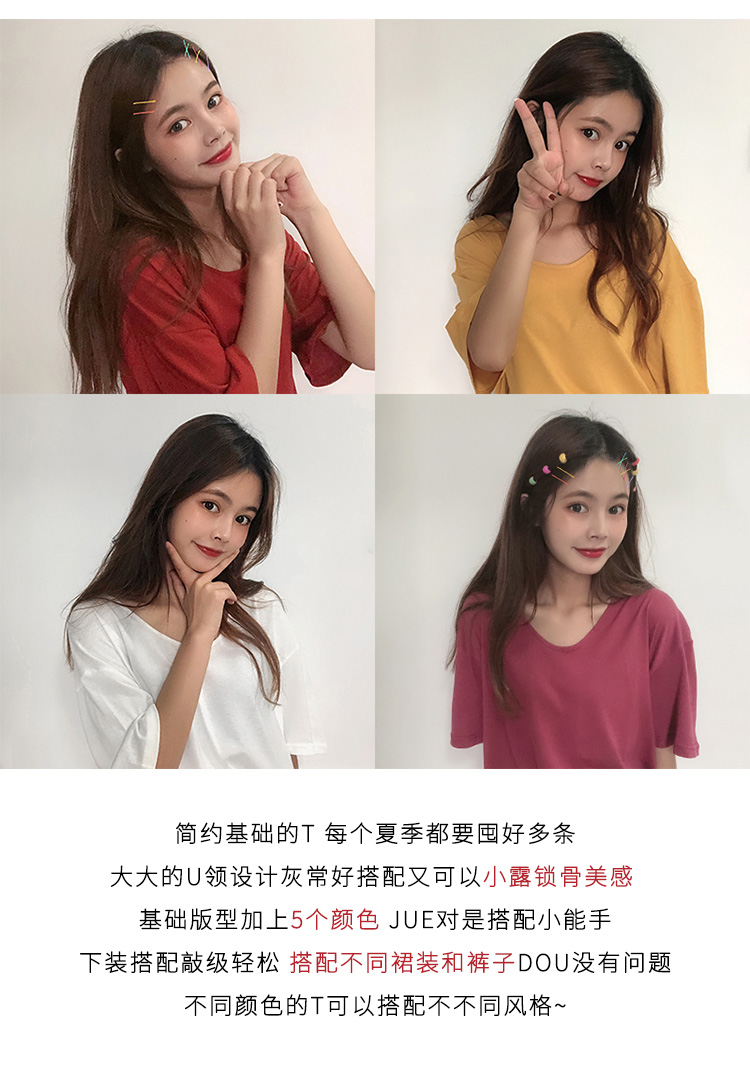 虎牙犬牙 五色大U領t恤女2019夏季新款韓版休閑原宿風百搭短袖t恤1入