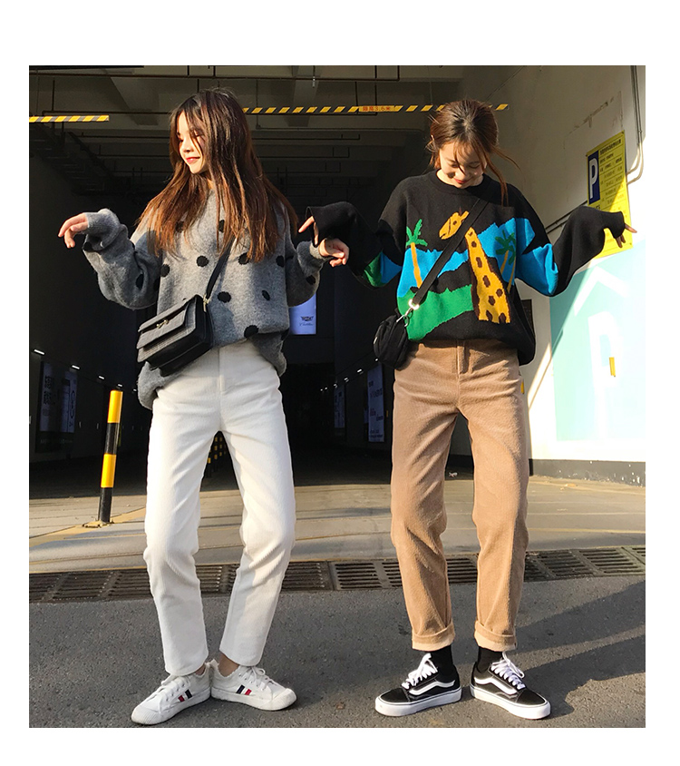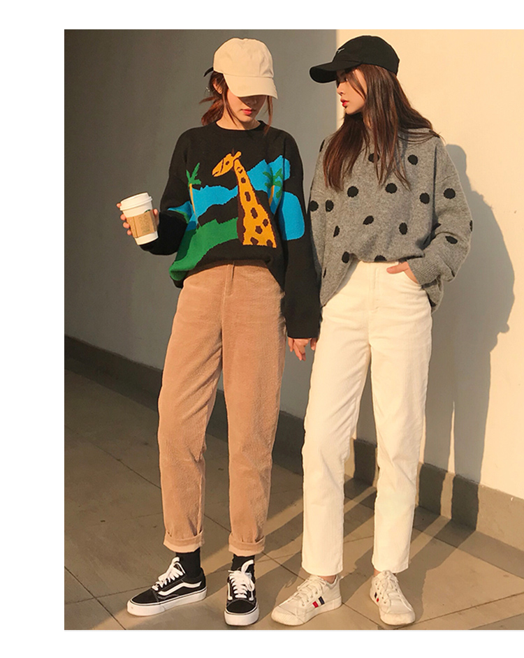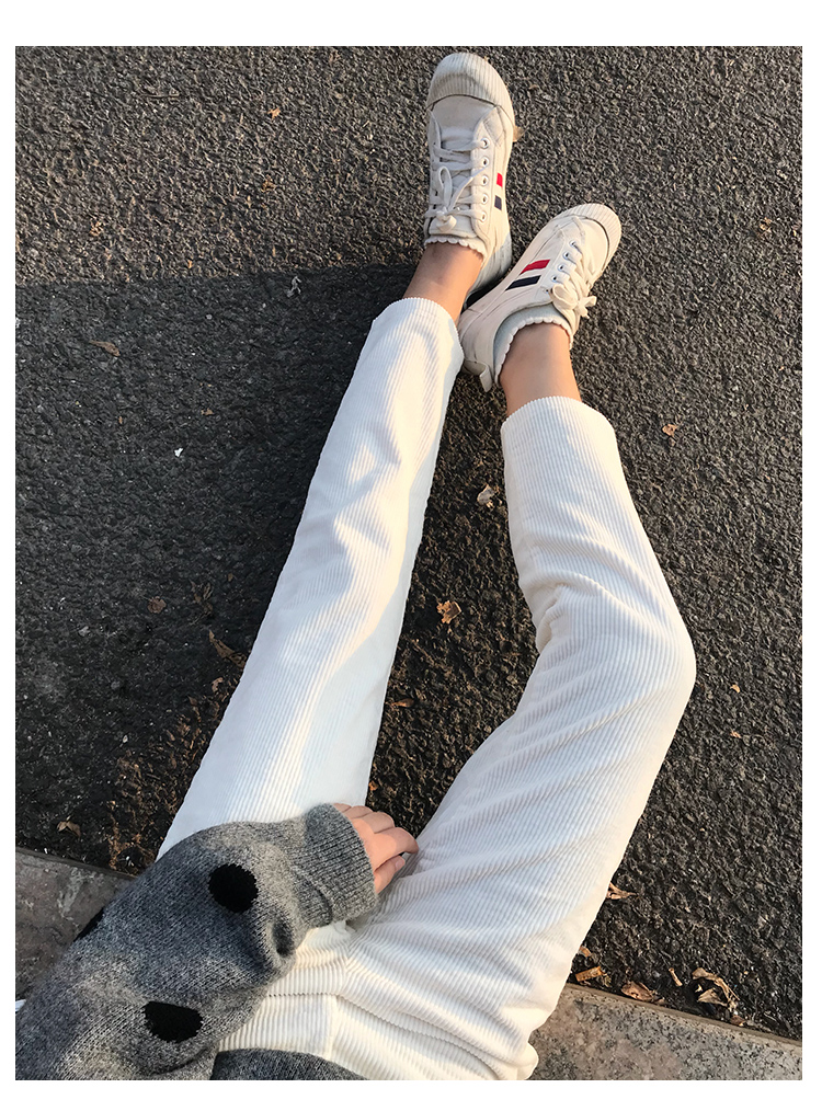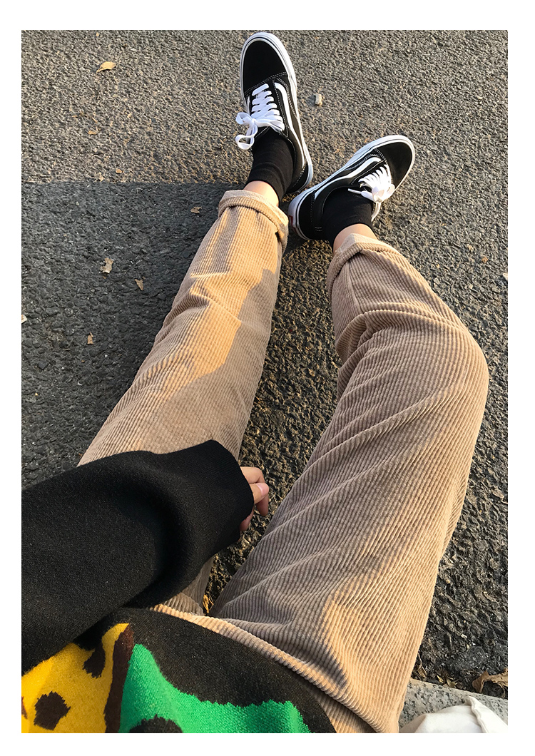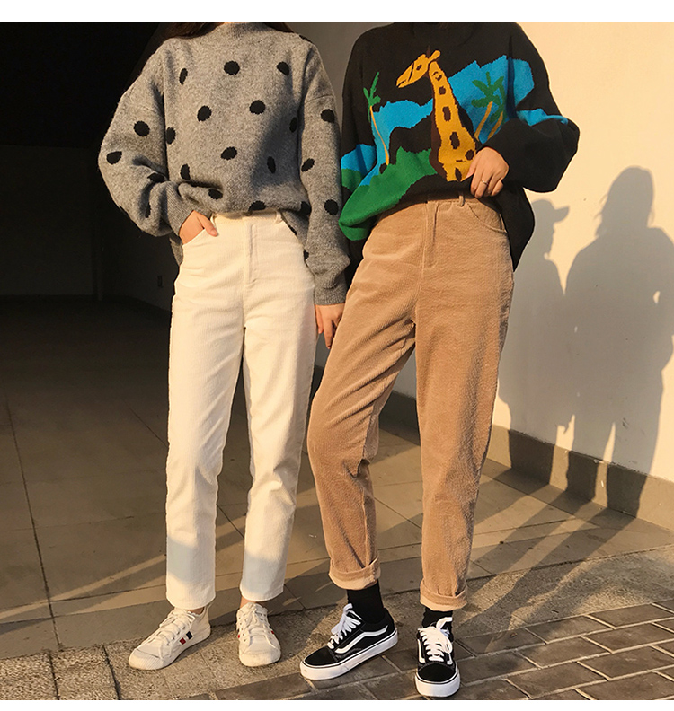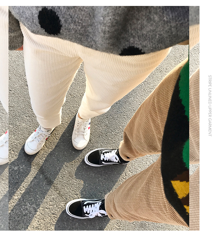 虎牙犬牙 燈芯絨褲子女2019新款寬松直筒褲哈倫褲春秋港味休閑褲1入