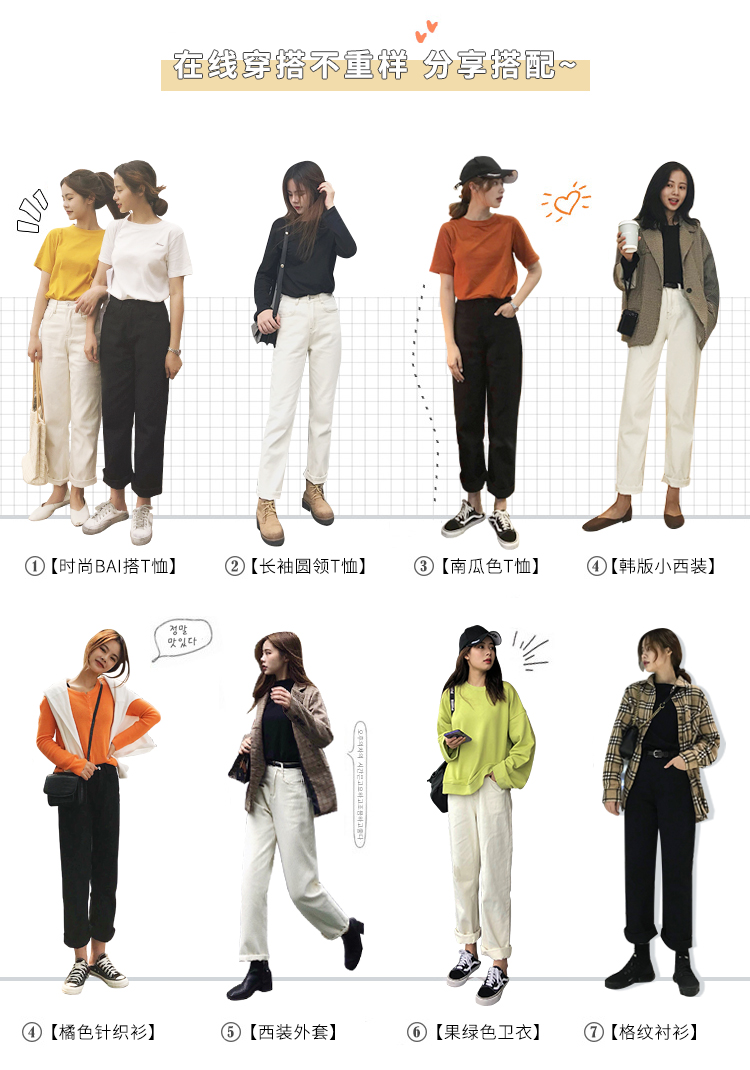 虎牙犬牙 白色直筒百搭牛仔褲2019新款韓版高腰cec褲子女直筒怪味1入