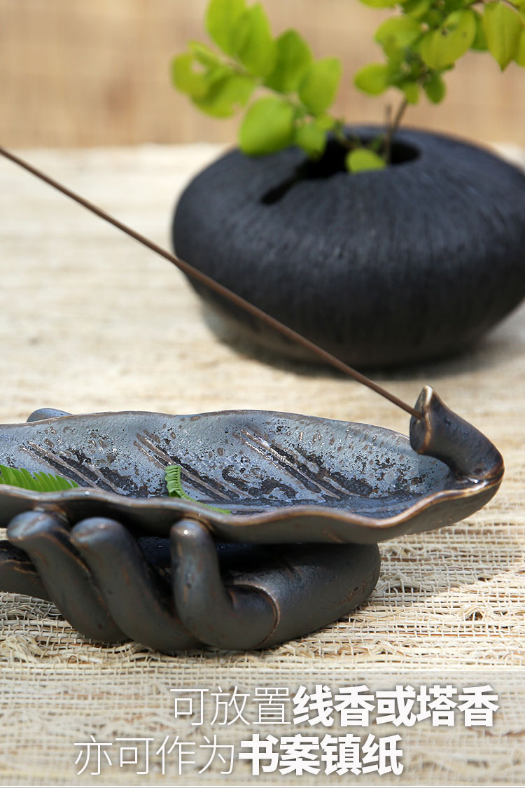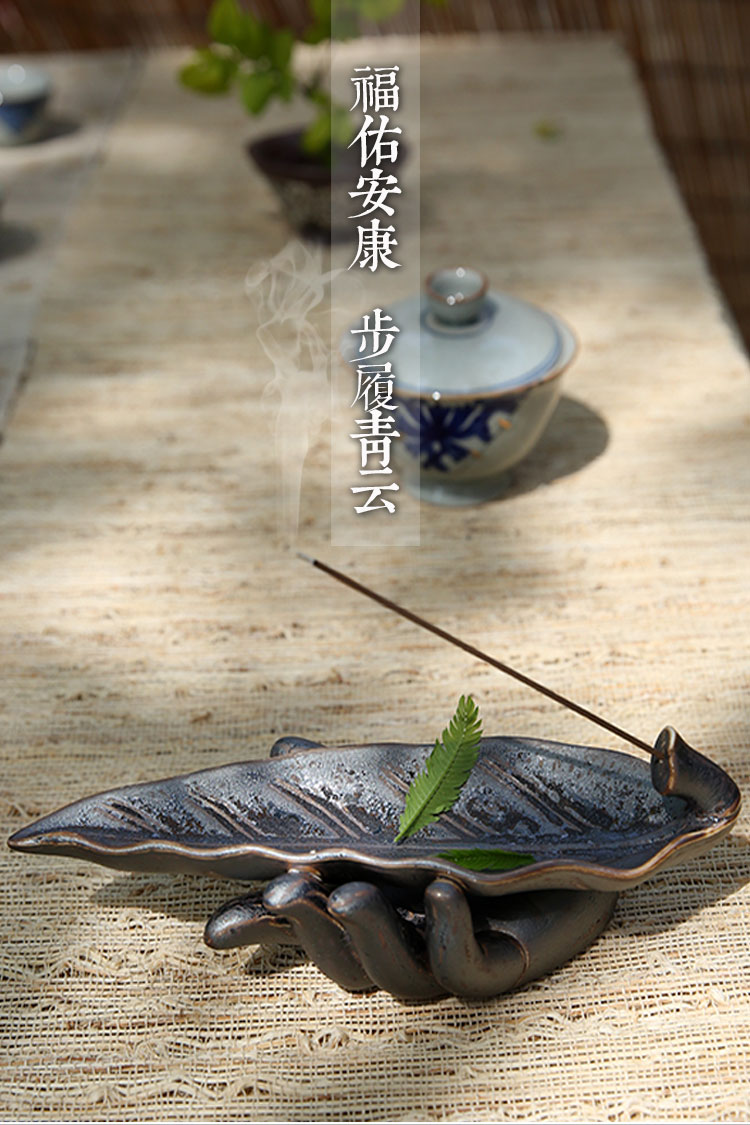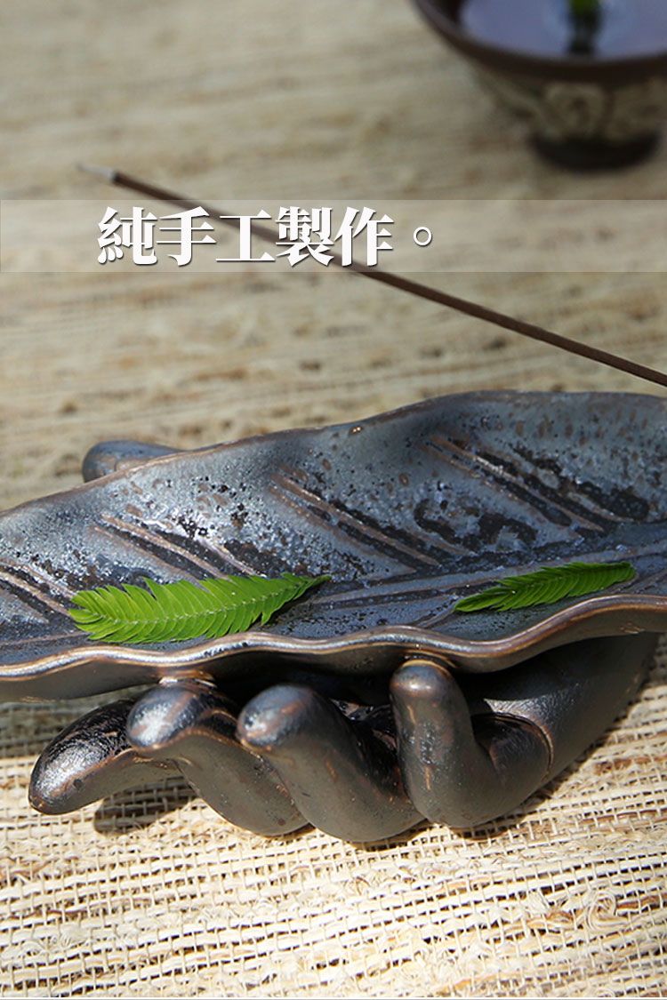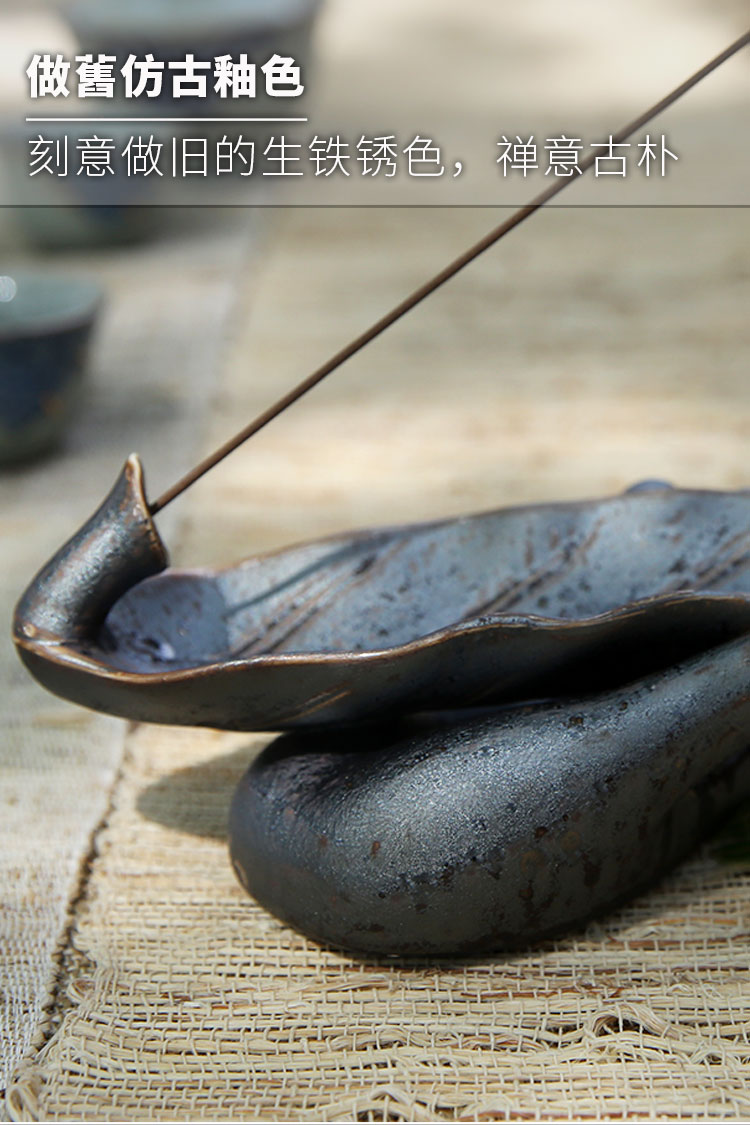 長線香香插仿古鐵銹仿真陶瓷樹葉香座茶道桌面擺件1入