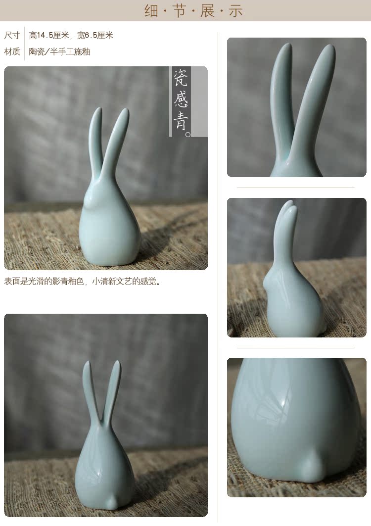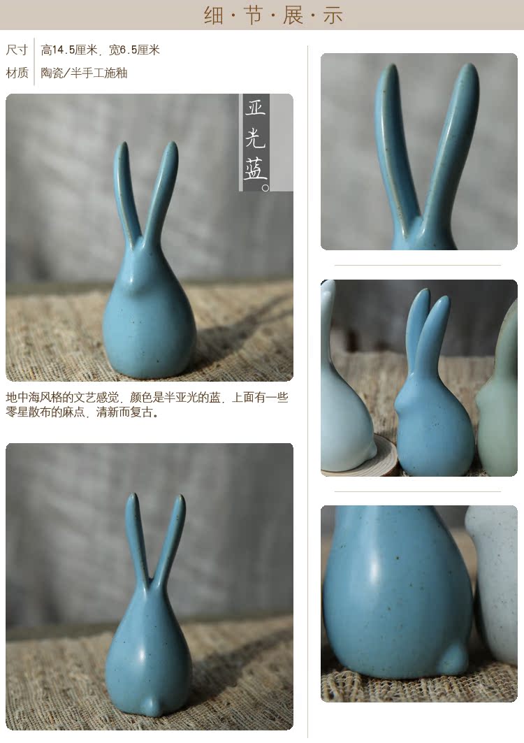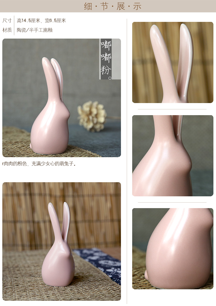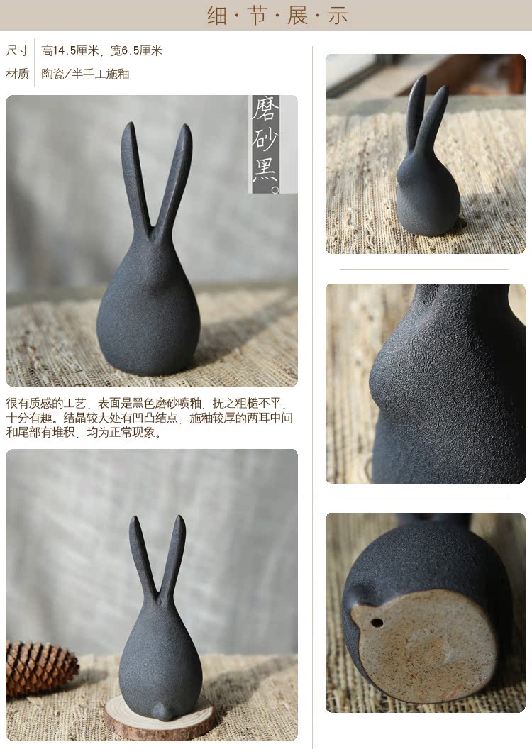 萌兔可愛小兔子陶瓷擺件清新文藝原創意手工動物禮物桌面茶寵擺件1入