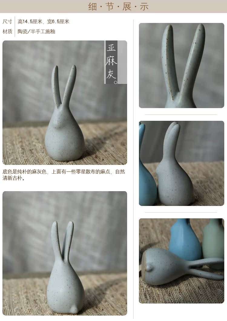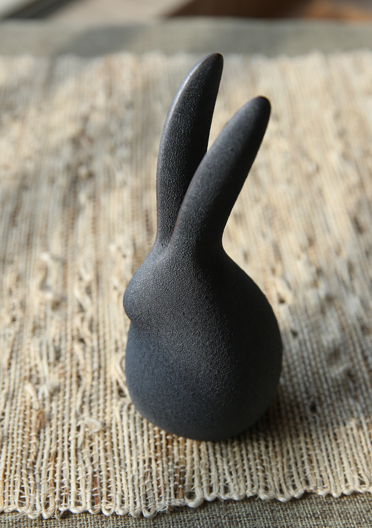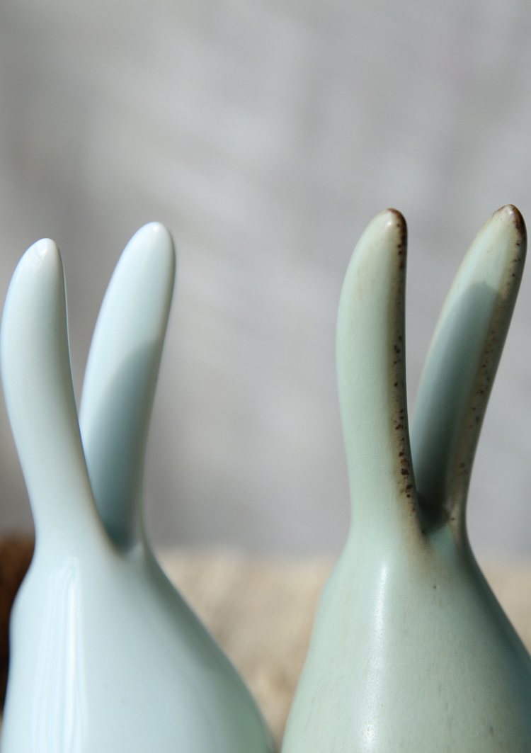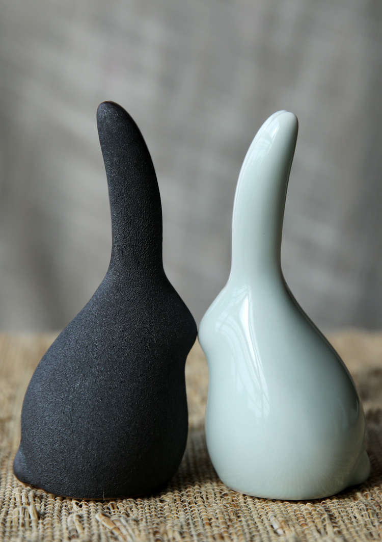 萌兔可愛小兔子陶瓷擺件清新文藝原創意手工動物禮物桌面茶寵擺件1入