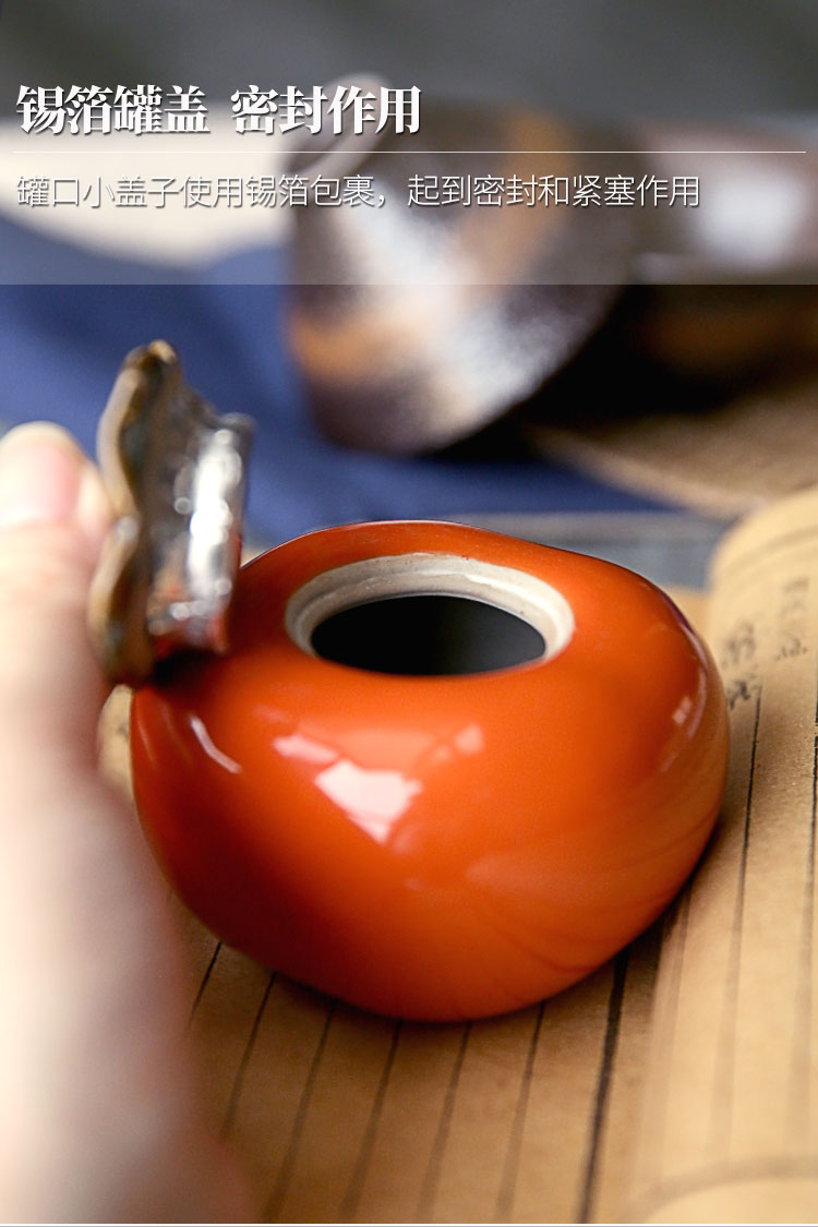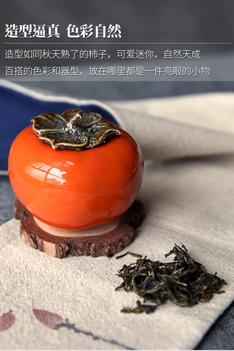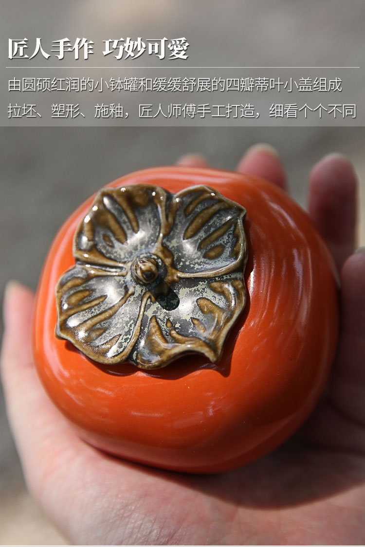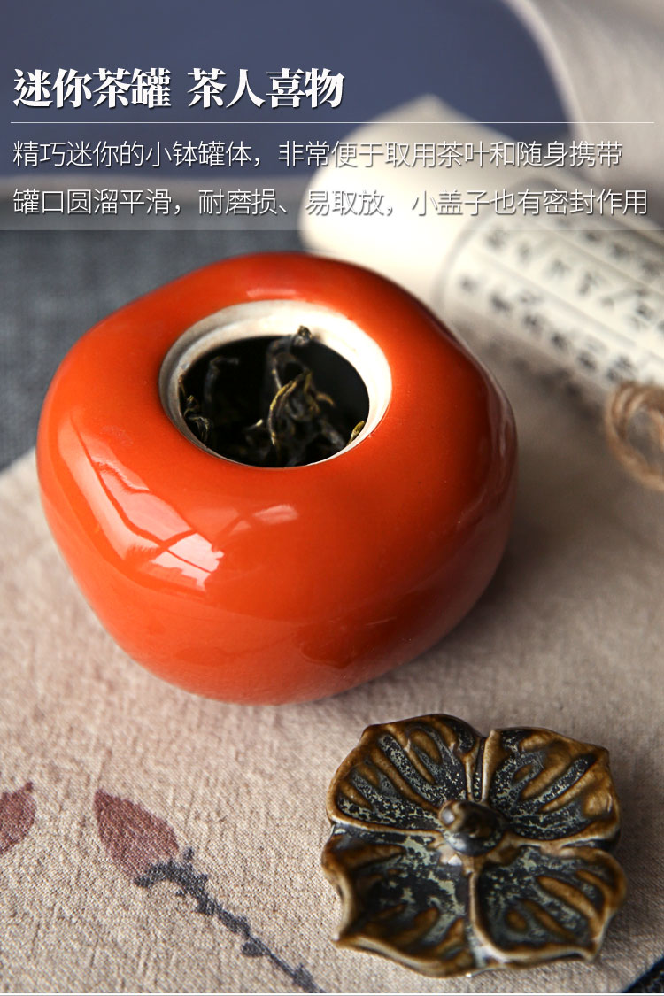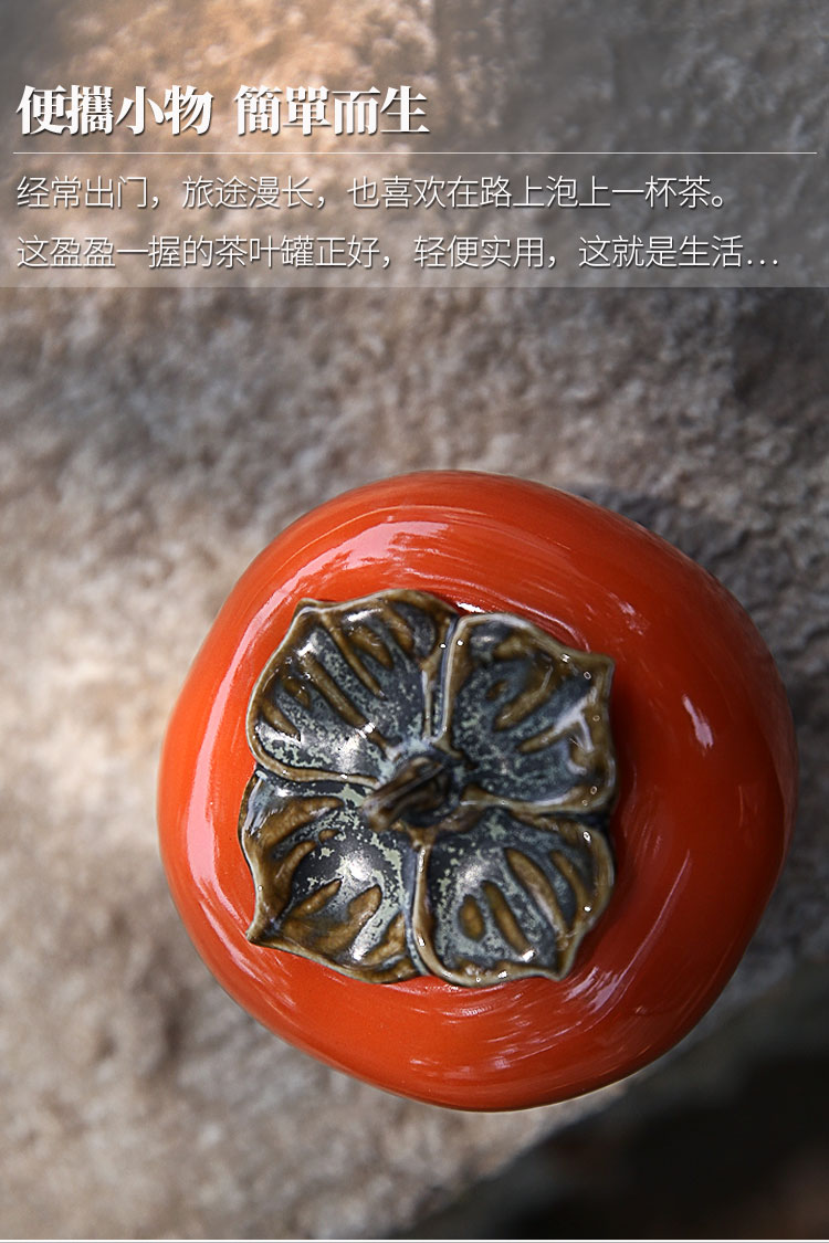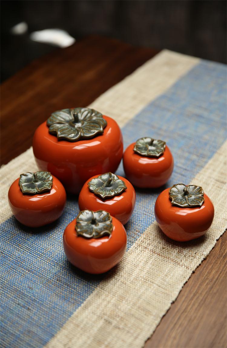 迷你手工陶瓷茶葉罐小茶罐柿子茶倉儲物罐旅行便攜綠茶密封罐柿柿1入