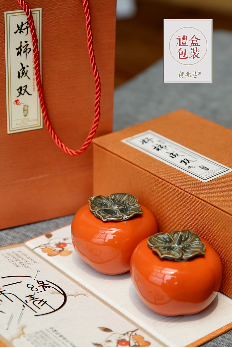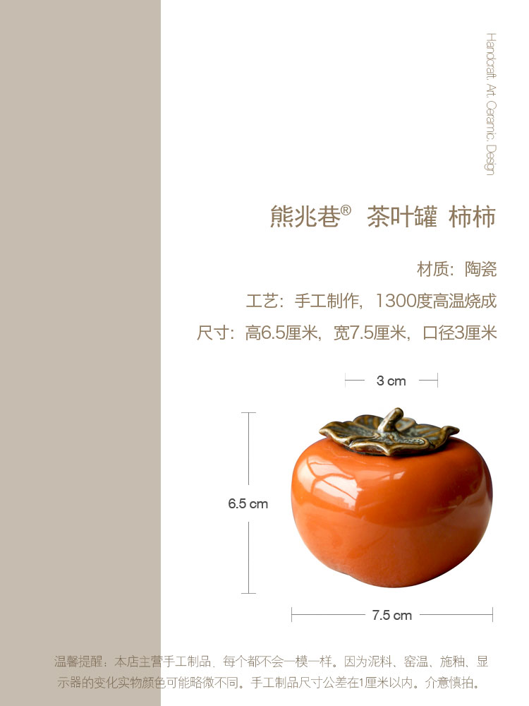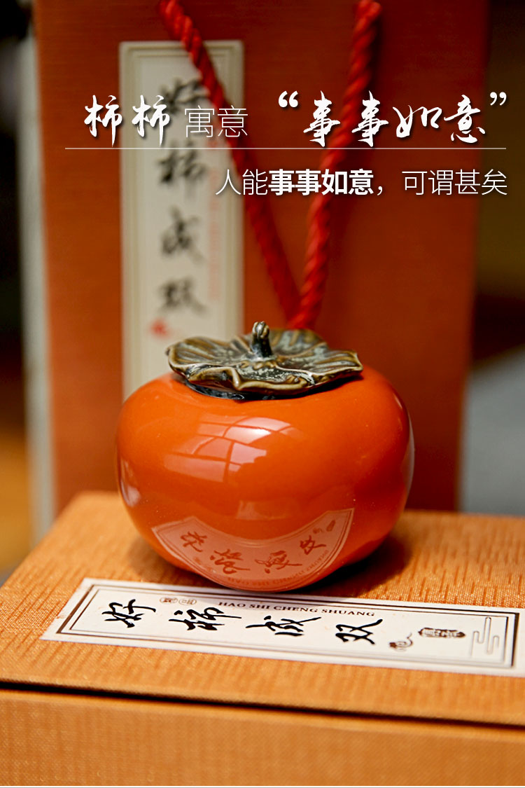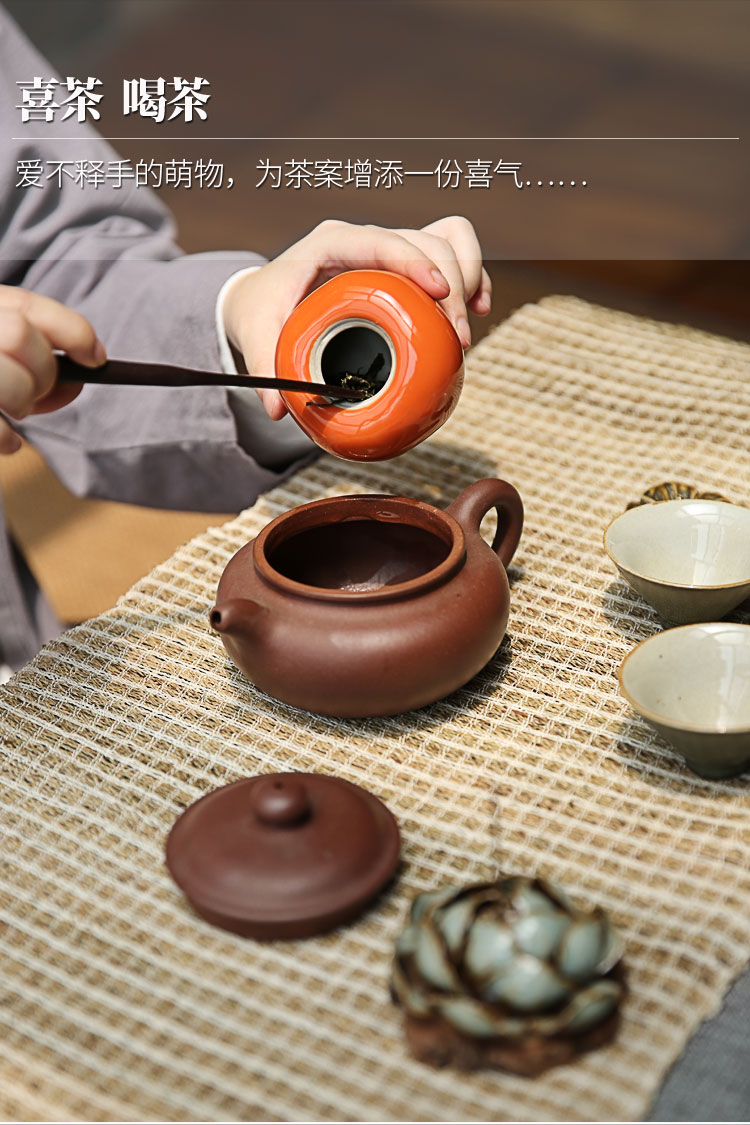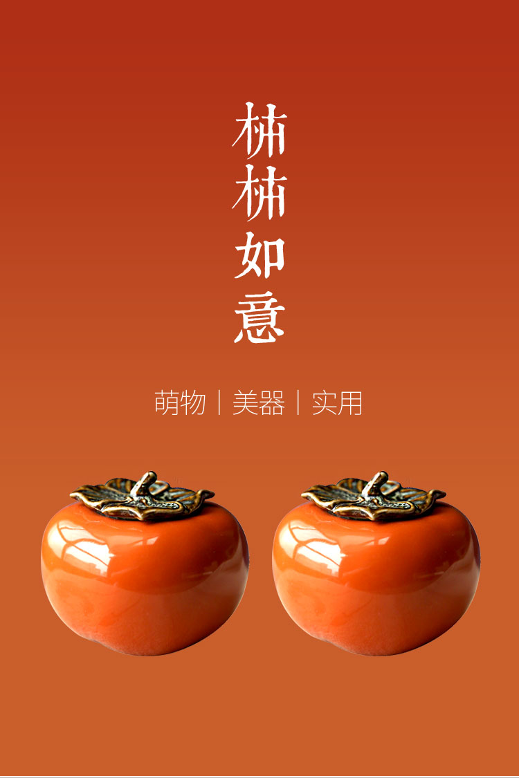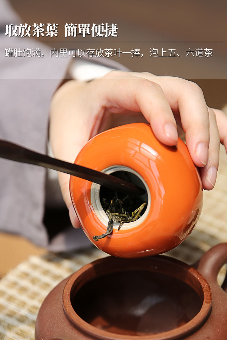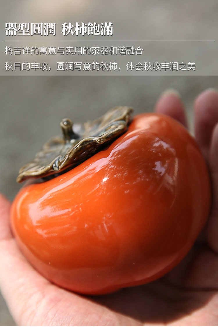 迷你手工陶瓷茶葉罐小茶罐柿子茶倉儲物罐旅行便攜綠茶密封罐柿柿1入