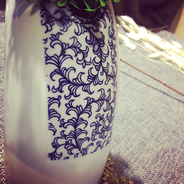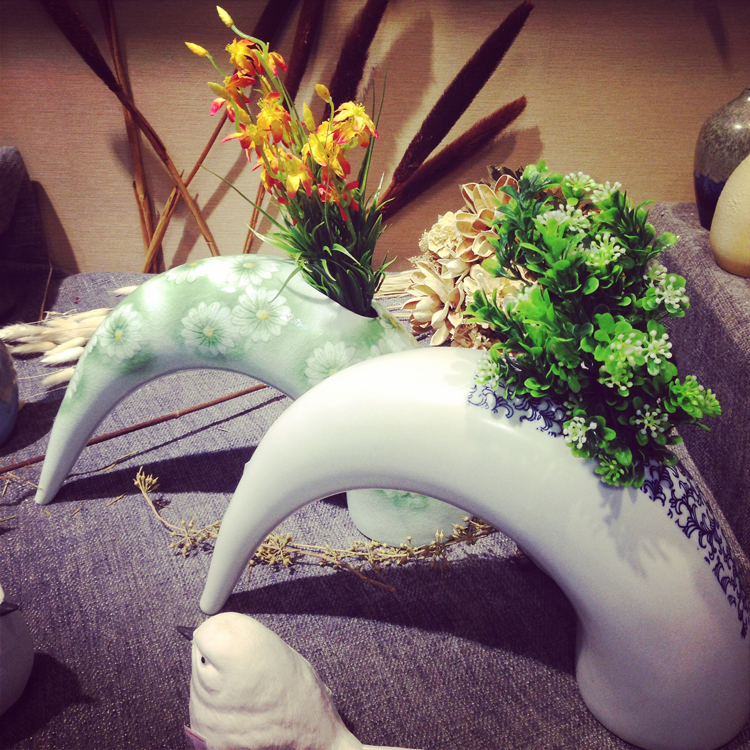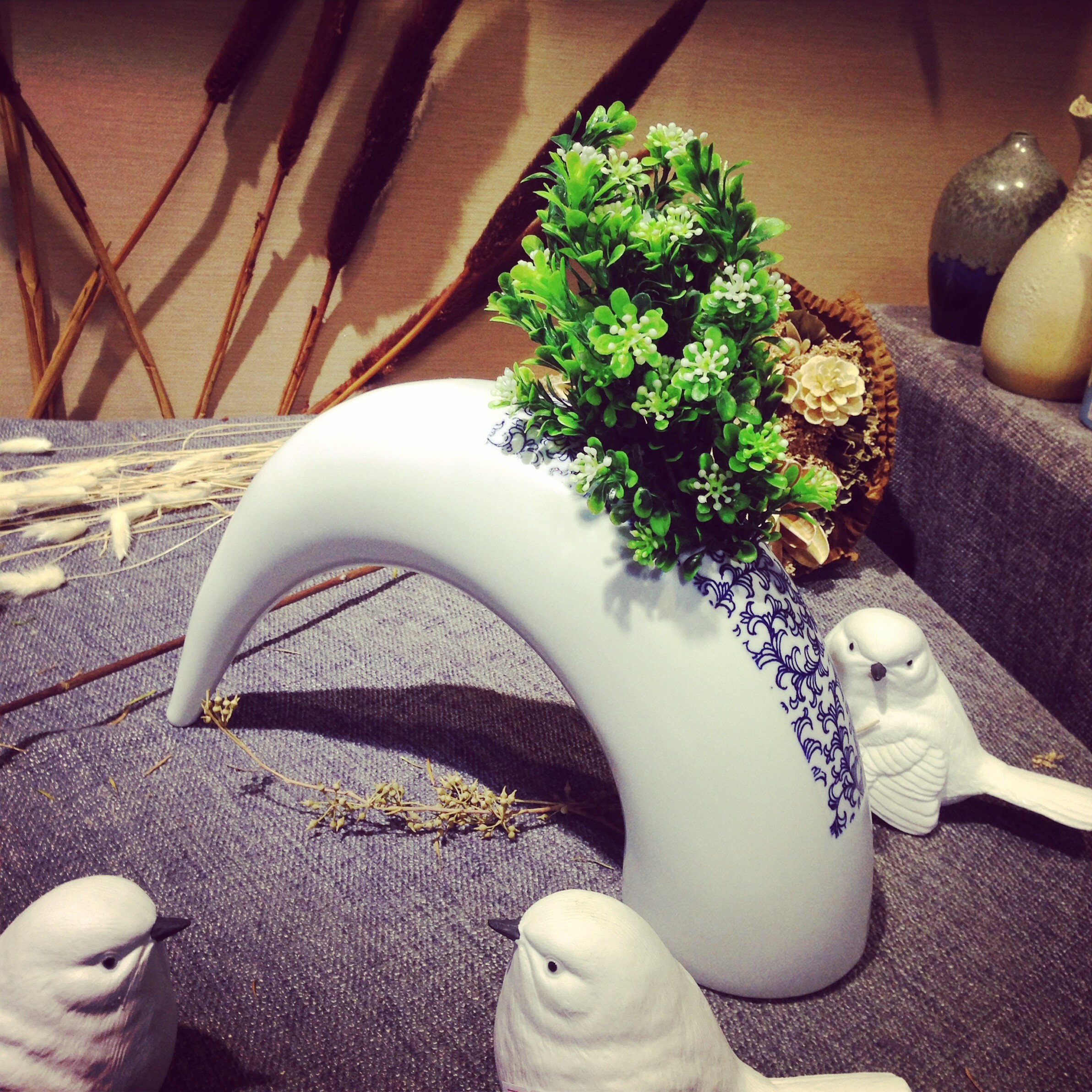 白色青花月牙花瓶 陶瓷擺件象牙型瓷器禮品清新古典中式個性創意1入