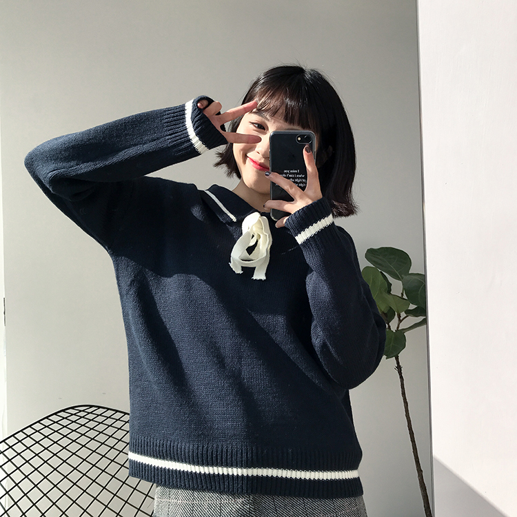 韓版甜美小清新翻領寬松打底很仙的毛衣洋氣百搭針織衫女上衣學生1入