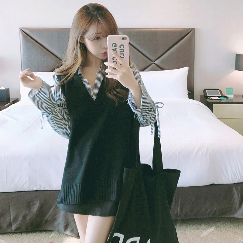 2019秋冬新款韓版女裝氣質學院風百搭顯瘦V領針織衫馬甲背心馬夾1入