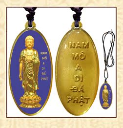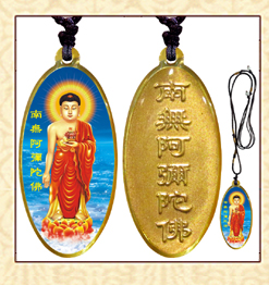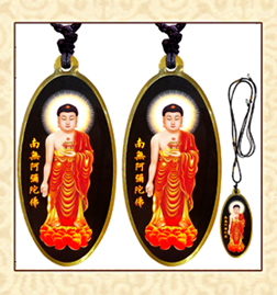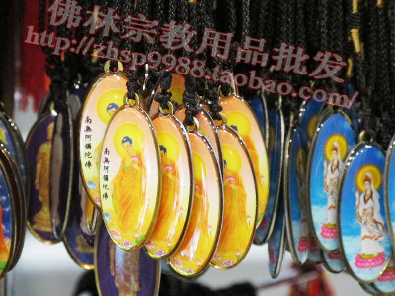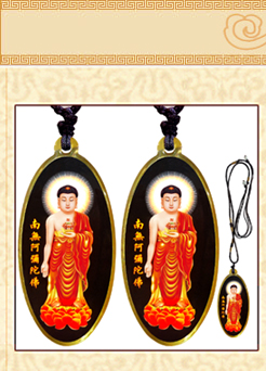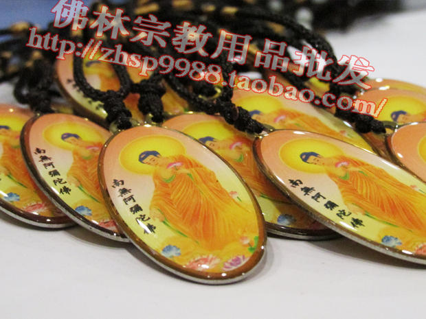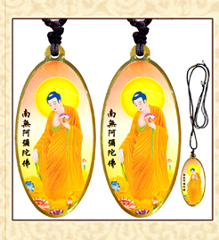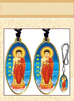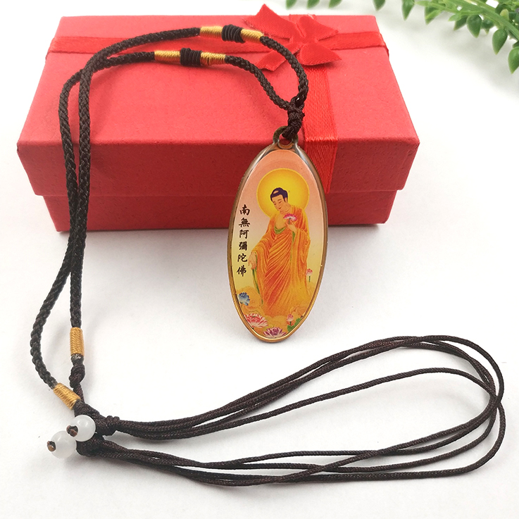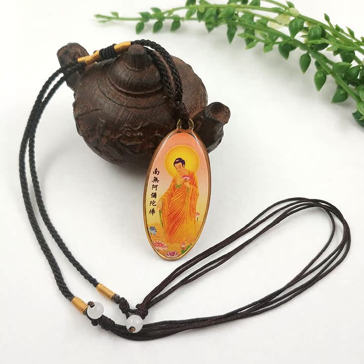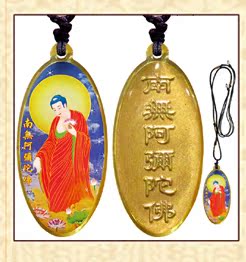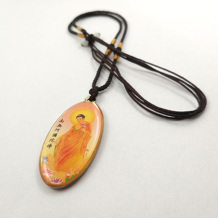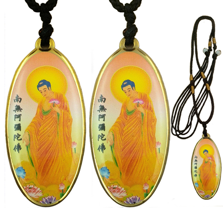 黃色接引阿彌陀佛銹鋼滴膠吊墜賜福結緣保平安/佛林宗教用品