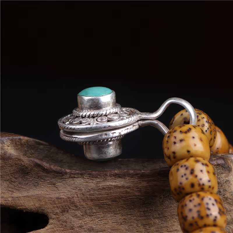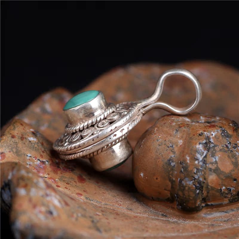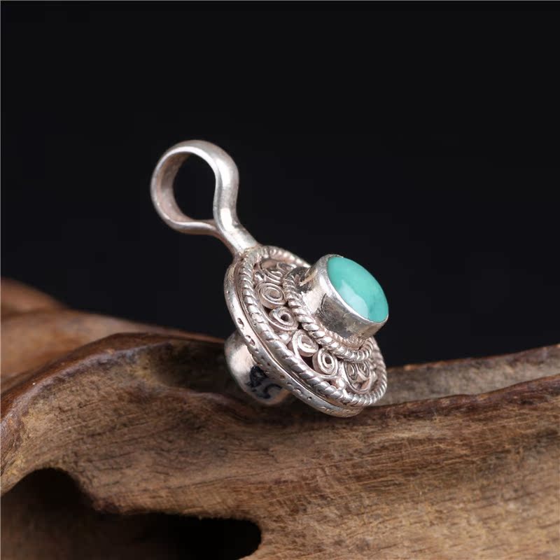 材質:純銀鑲嵌天然綠松石。尺寸:銀花邊直徑約16毫米。