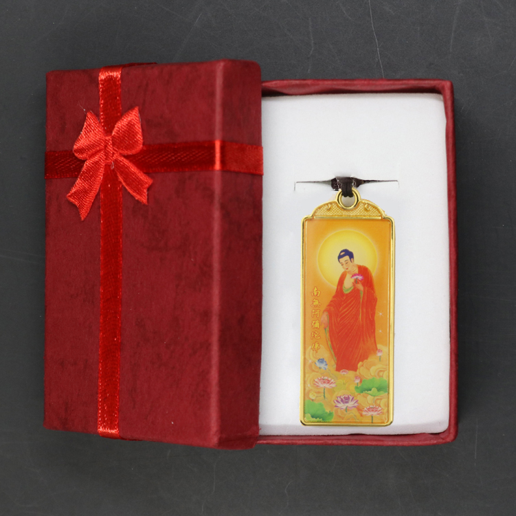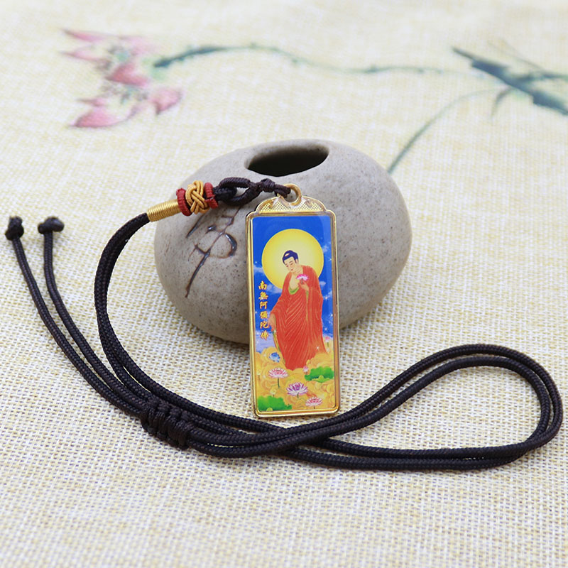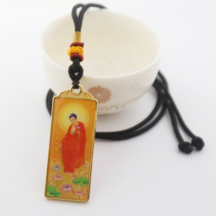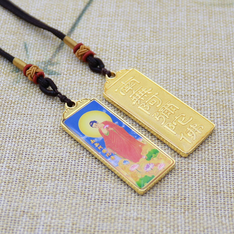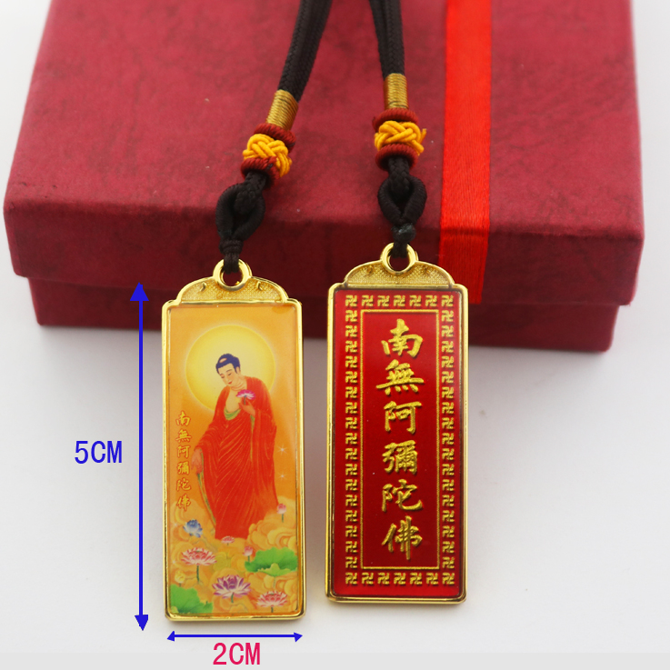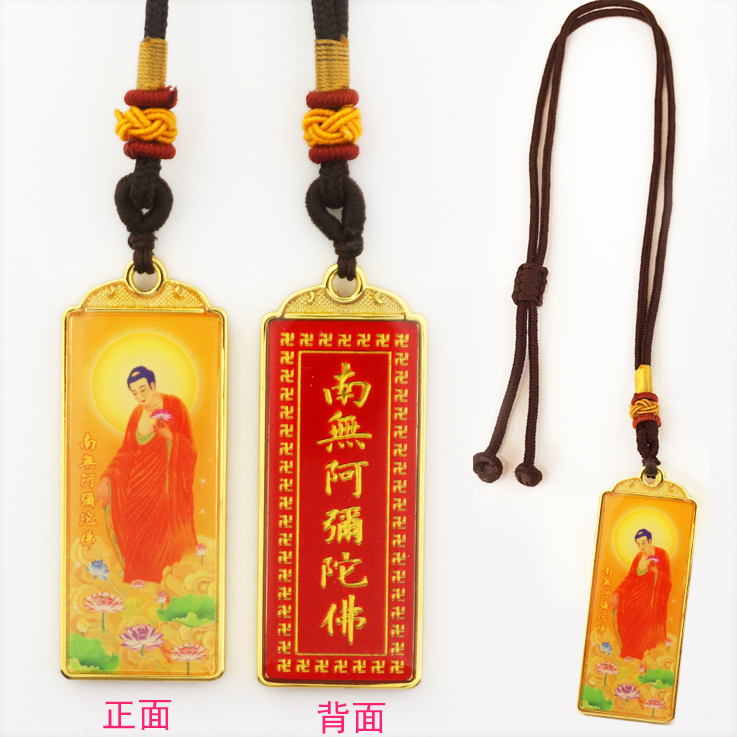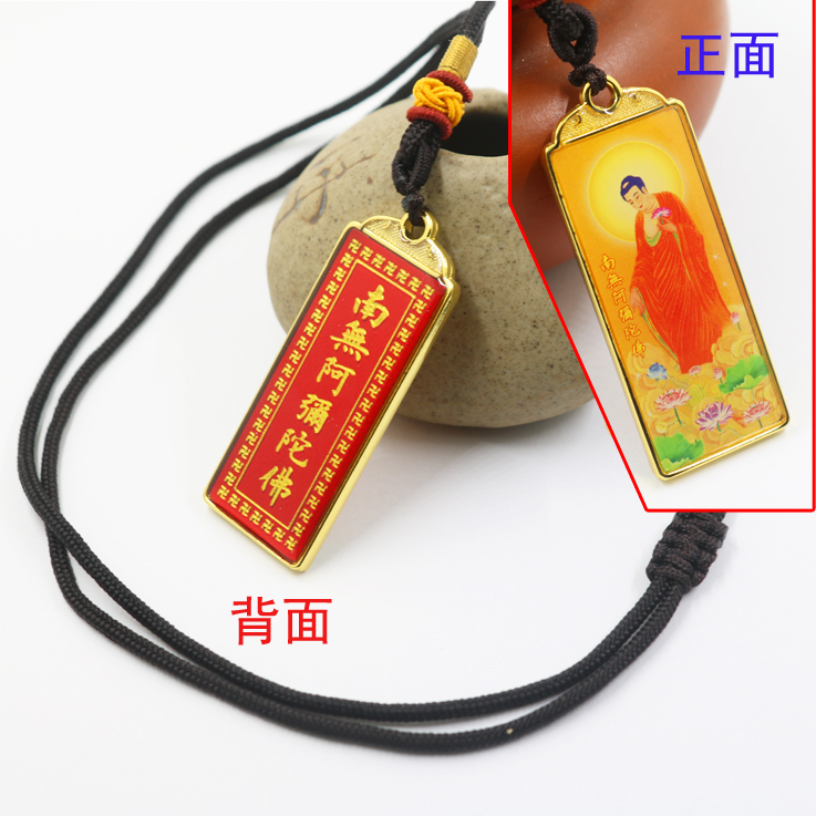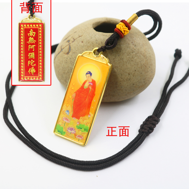 鈦金南無阿彌陀佛接引像吊墜項鏈佛牌掛件保平安護身吊墜六字名號1入