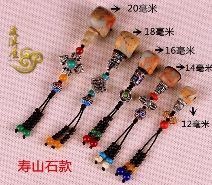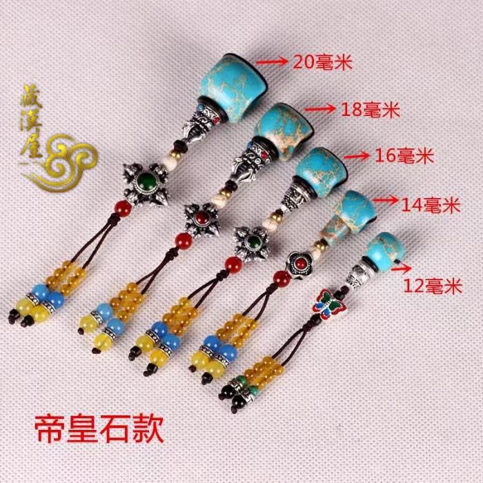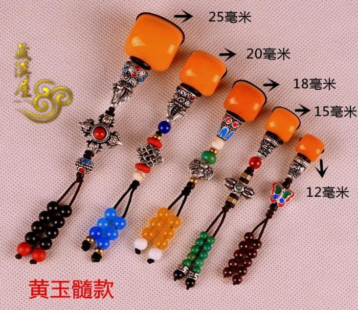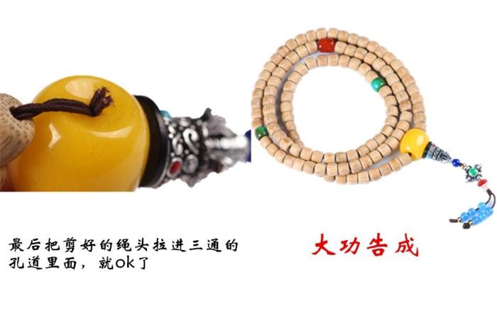 黃玉髓牛角壽山石藏式大金剛星月三通套裝餐佛頭佛珠手串配件飾品1入