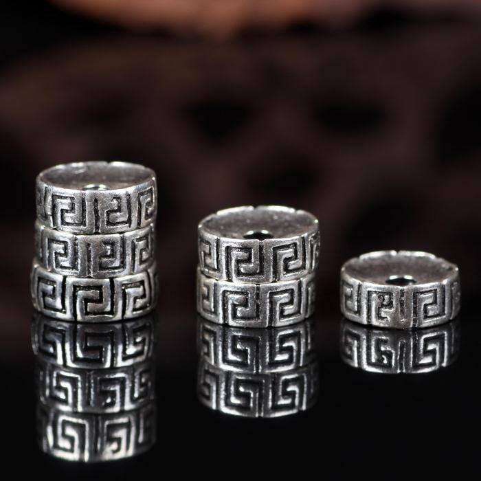 質感款925純銀厚隔片佛珠配件金剛星月菩提子配飾傳統款式回形紋1入
