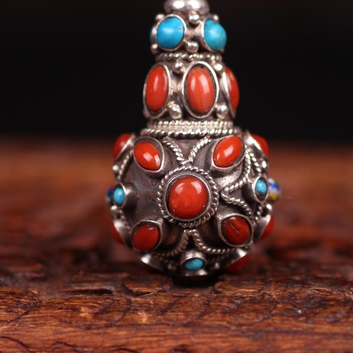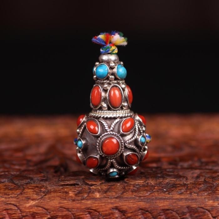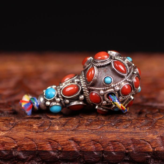 高端尼泊爾925純銀藏式佛珠配件三通佛頭金剛星月菩提子配飾1入
