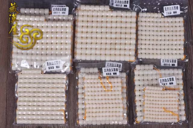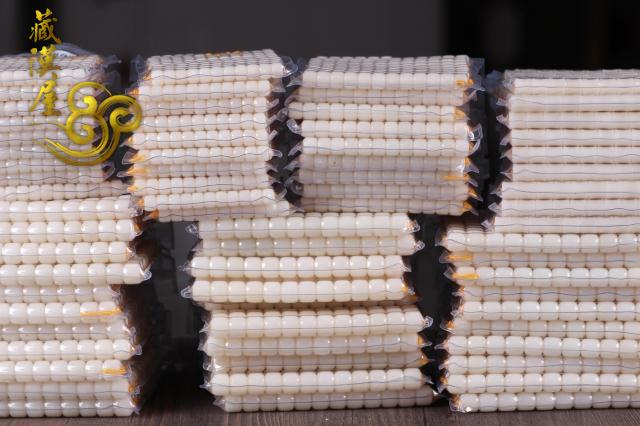 高品質干磨原色正月無月白玉菩提根桶珠108+6顆手串手鏈佛珠1入