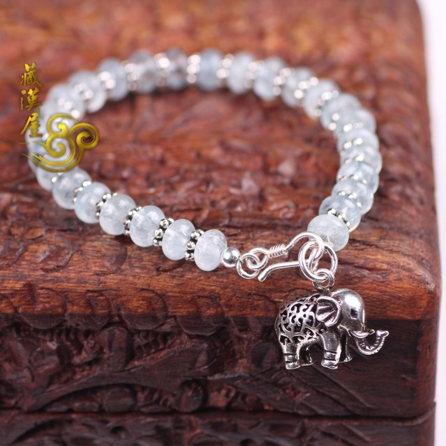 雅致秀氣尼泊爾藏飾品復古泰銀手工925純銀小象海藍寶手鏈鐲女1入