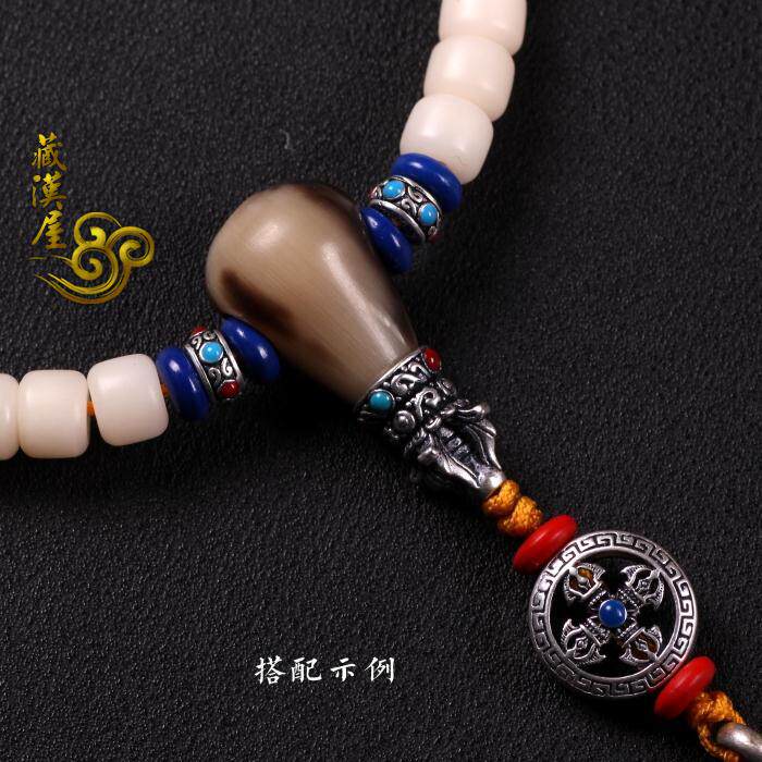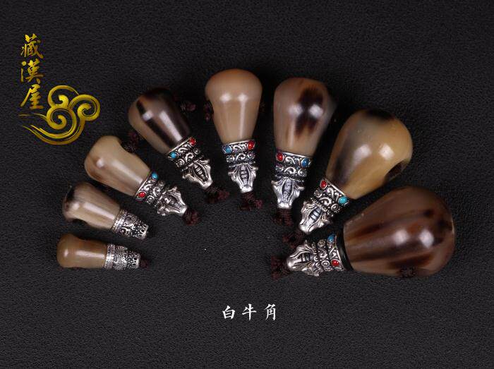 水滴形天然牛角手工打磨三通佛頭 diy配飾金剛星月菩提子佛珠配件1入