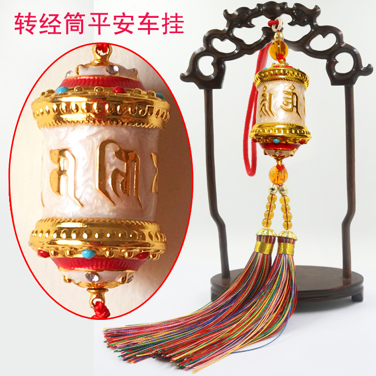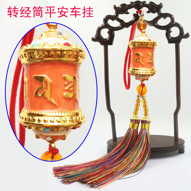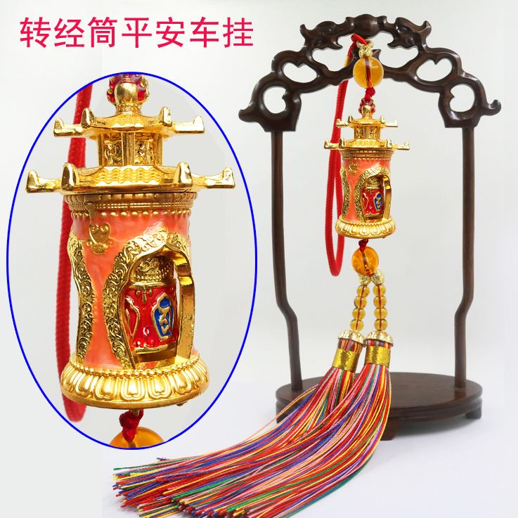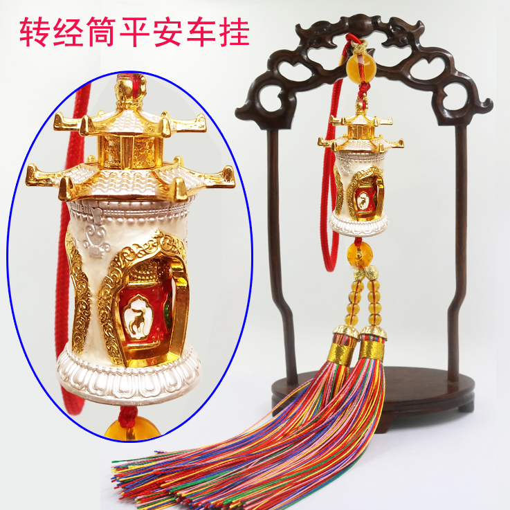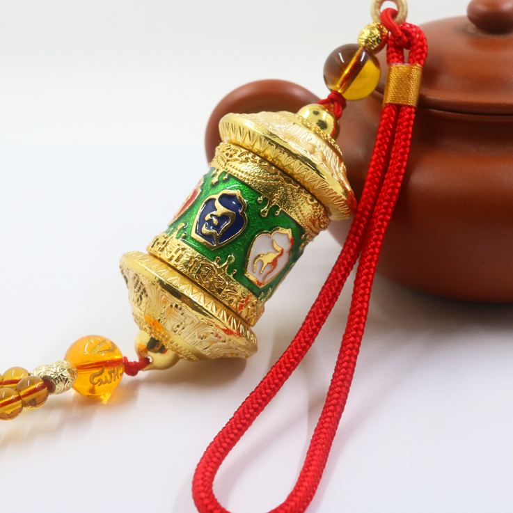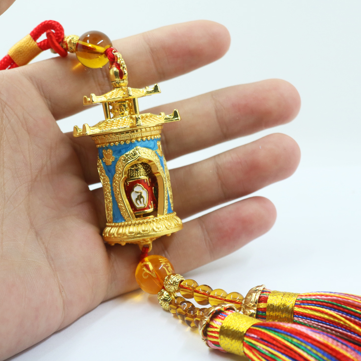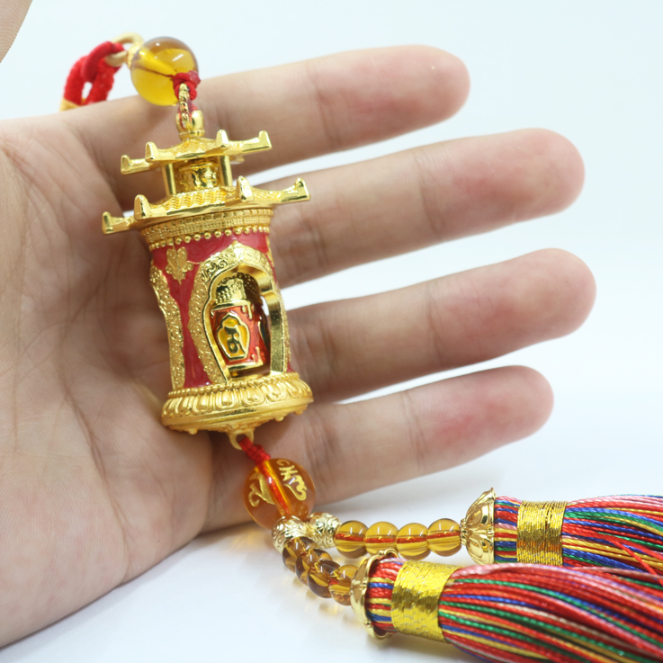 藏式合金轉經輪轉經筒車掛高檔保平安汽車掛件掛飾開光多款可選1入