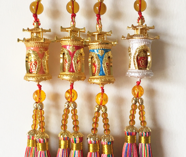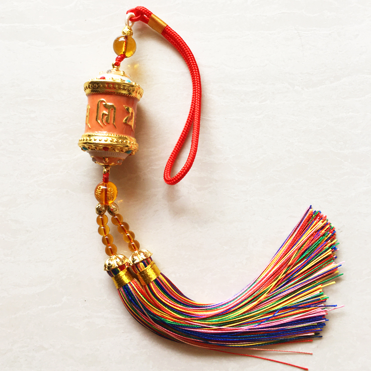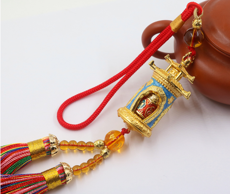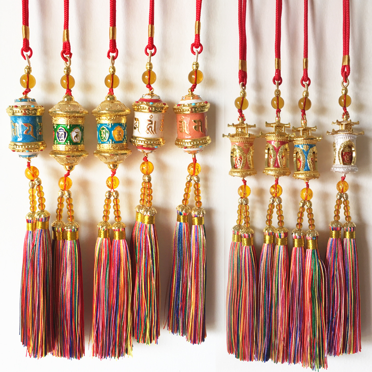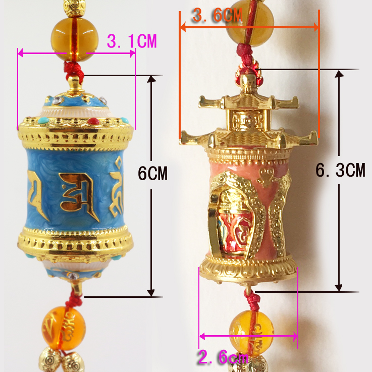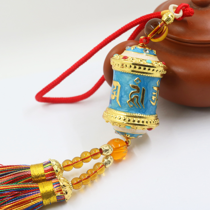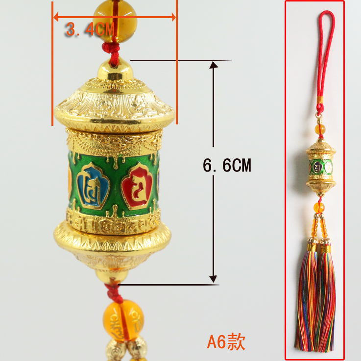 藏式合金轉經輪轉經筒車掛高檔保平安汽車掛件掛飾開光多款可選1入