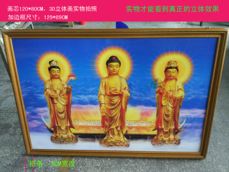 西方三圣3D立體畫阿彌陀佛觀音佛像光柵立體畫120*80定制多款可選1入