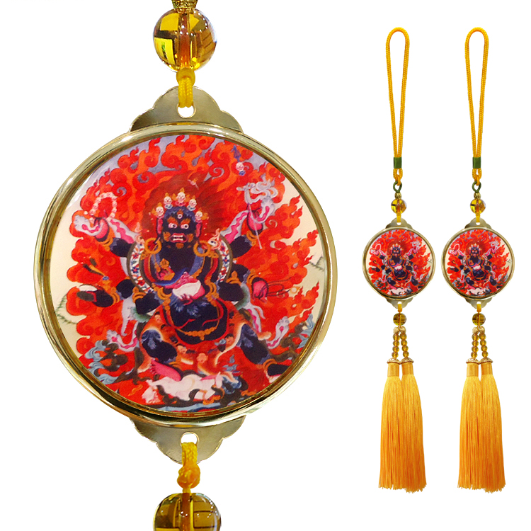 汽車掛件藏傳密宗六臂麻哈嘎拉像鈦金汽車裝飾品 佛教工藝品1入
