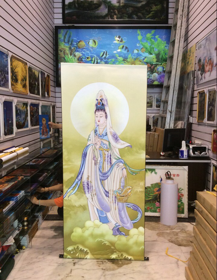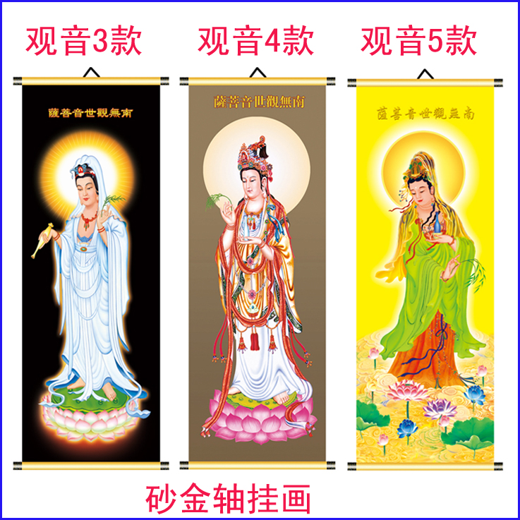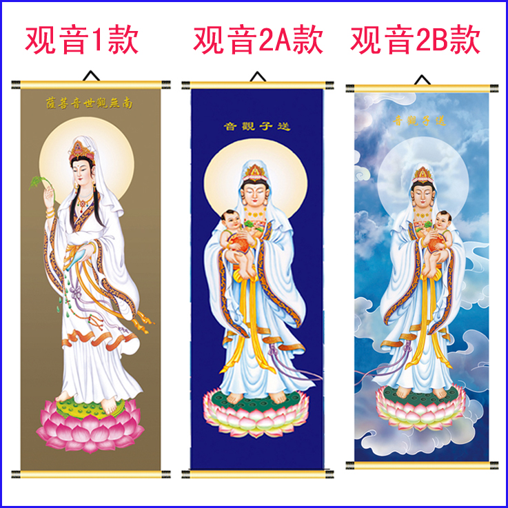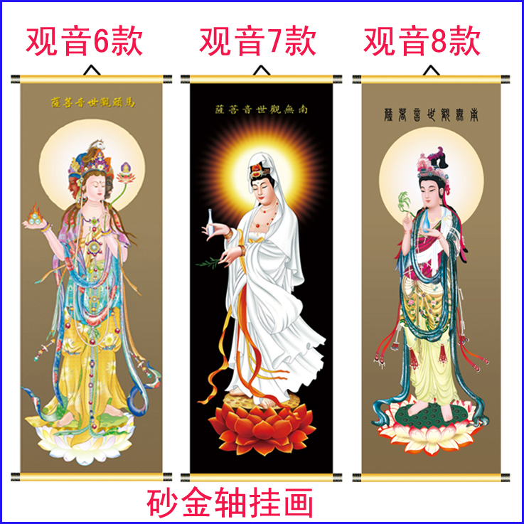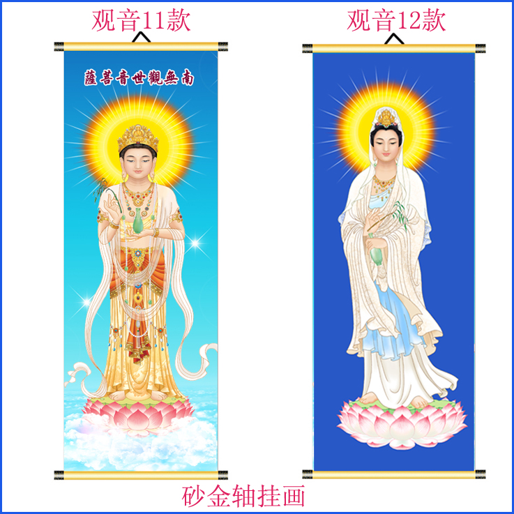高清觀音菩薩掛畫送子觀音心經觀音荷葉觀音佛像卷軸掛畫砂金軸1入