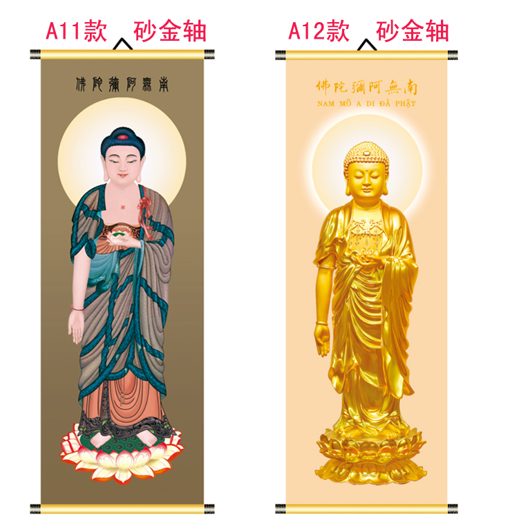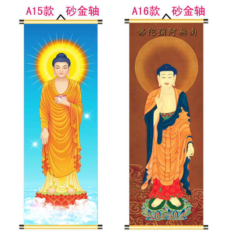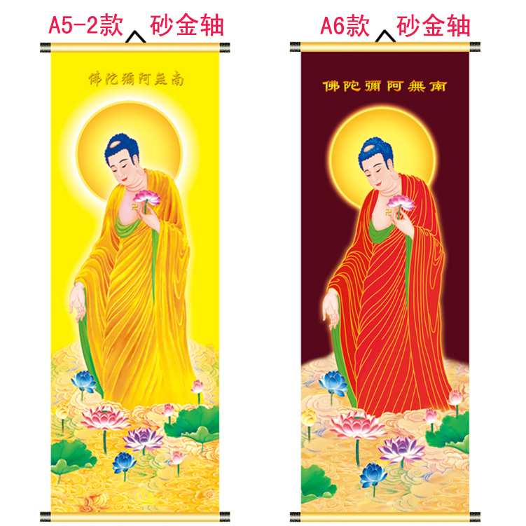 阿彌陀佛金身佛像掛畫掛軸畫卷軸畫帆畫布防水砂金軸多款圖可選1入