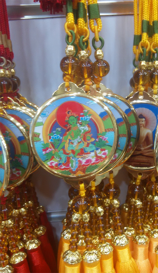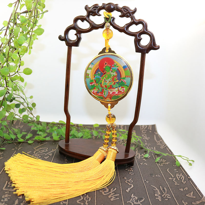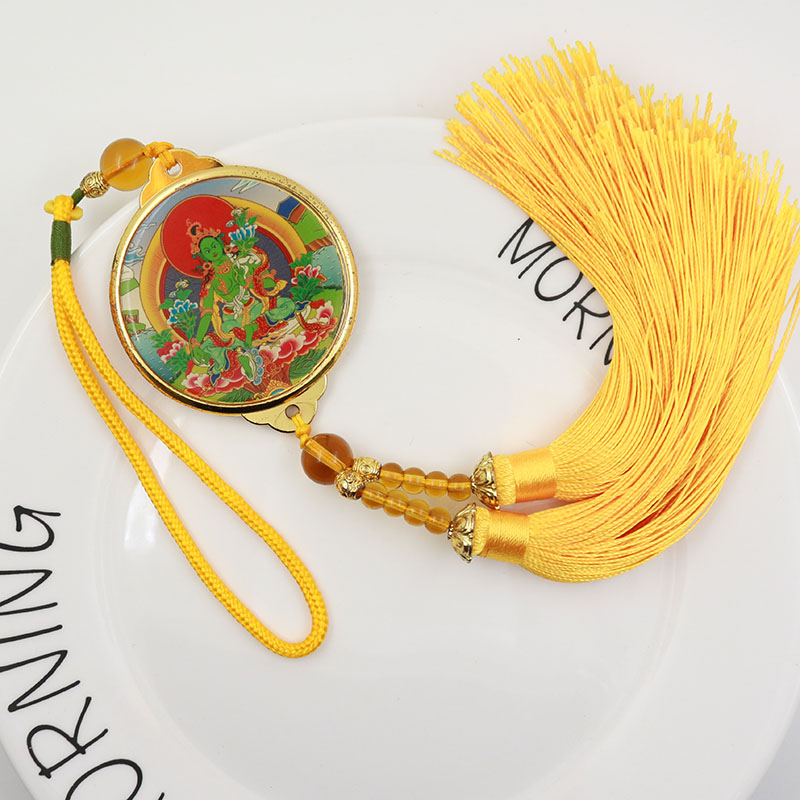 藏傳密宗綠度母像保平安汽車掛件鈦金汽車掛飾品 佛教工藝品1入