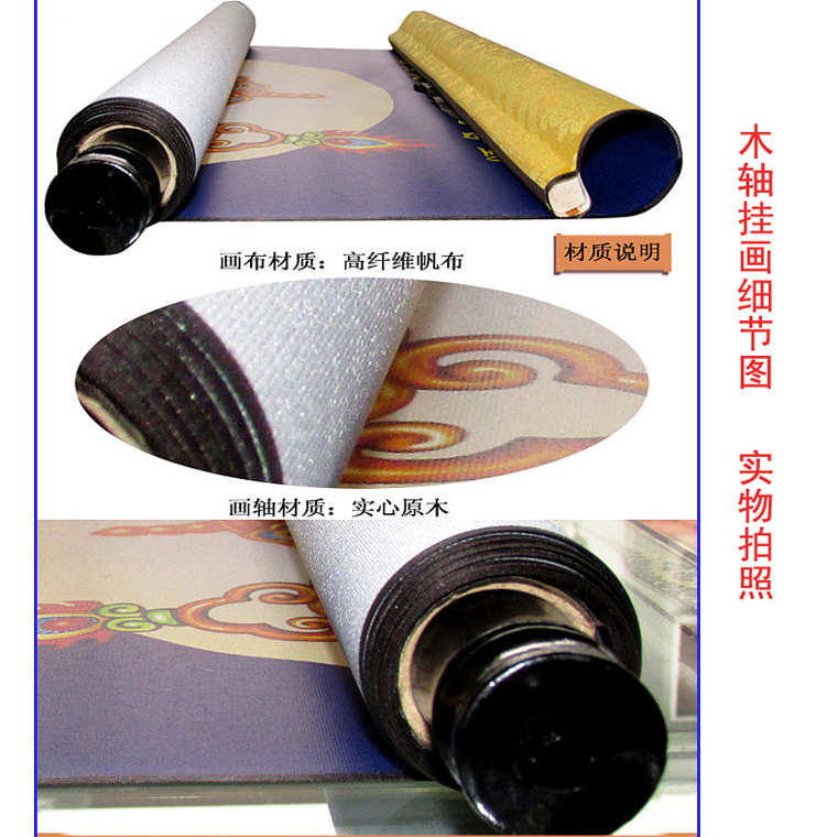 黃財神卷軸畫掛畫佛像畫供奉畫 佛像掛軸畫高清莊嚴帆畫布木軸1入