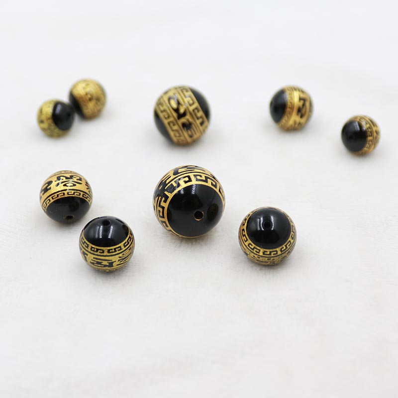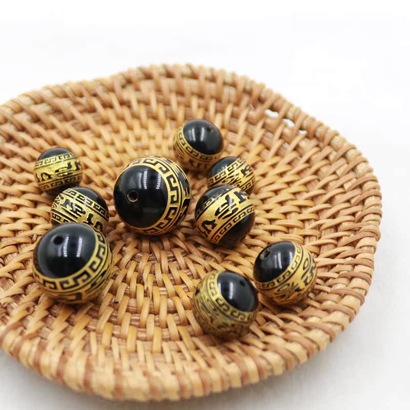 【散珠】DIY飾品配件六字真言佛珠子黑瑪瑙圓珠子編織繩手鏈串珠1入