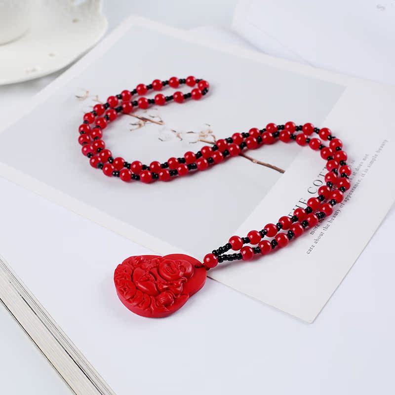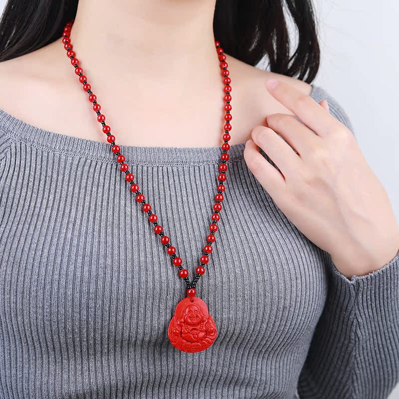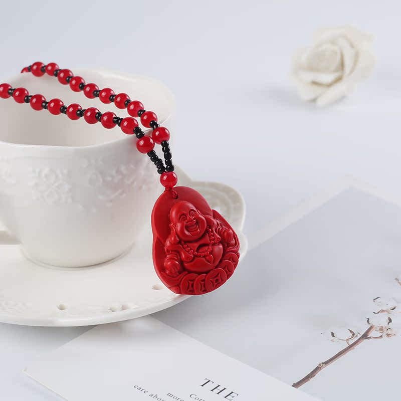 開光紅朱砂彌勒佛像吊墜精致男女款項鏈本命佛轉運飾品保平安掛件1入