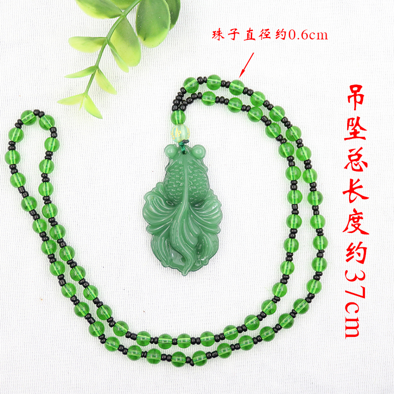 開光原創民族風綠玉髓金魚玉牌吊墜項鏈轉運護身保平安玉佩項鏈掛1入