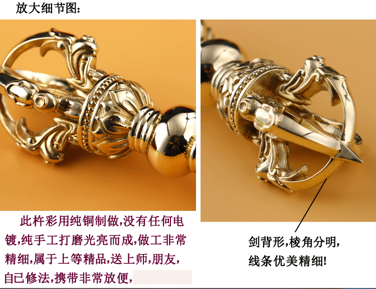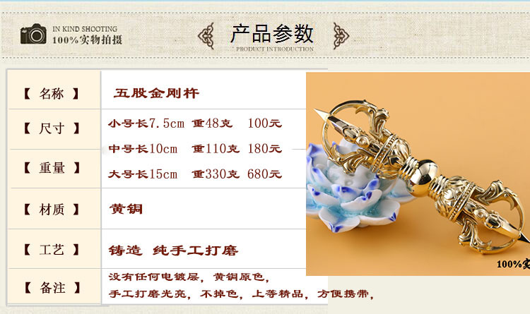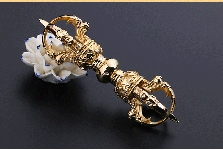 藏傳佛教 五股金剛杵密宗法器黃銅純手工精品送上師降魔杵擺件1入