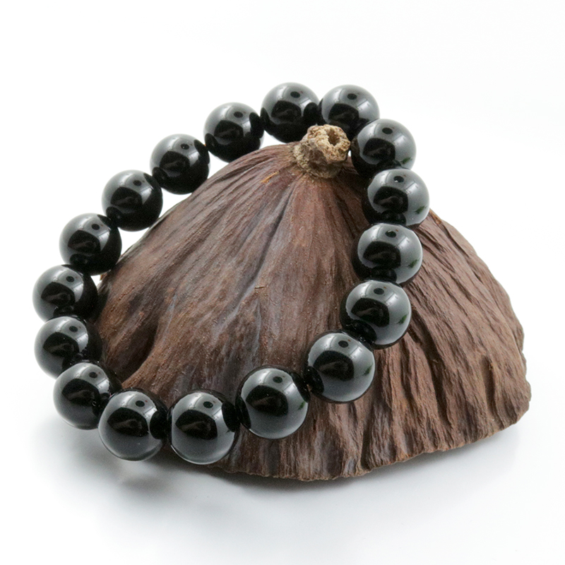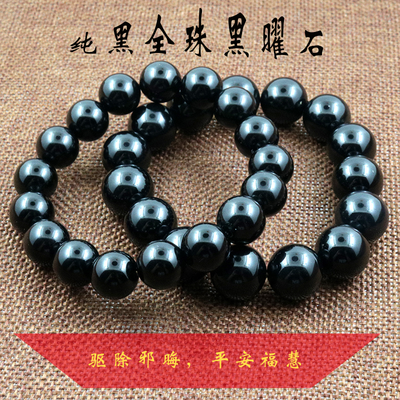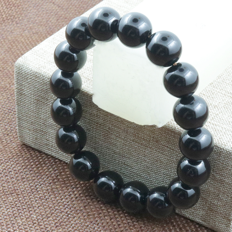 開光黑曜石手鏈手珠鏈男女款天然水晶佛珠手串納福轉運情侶飾品1入