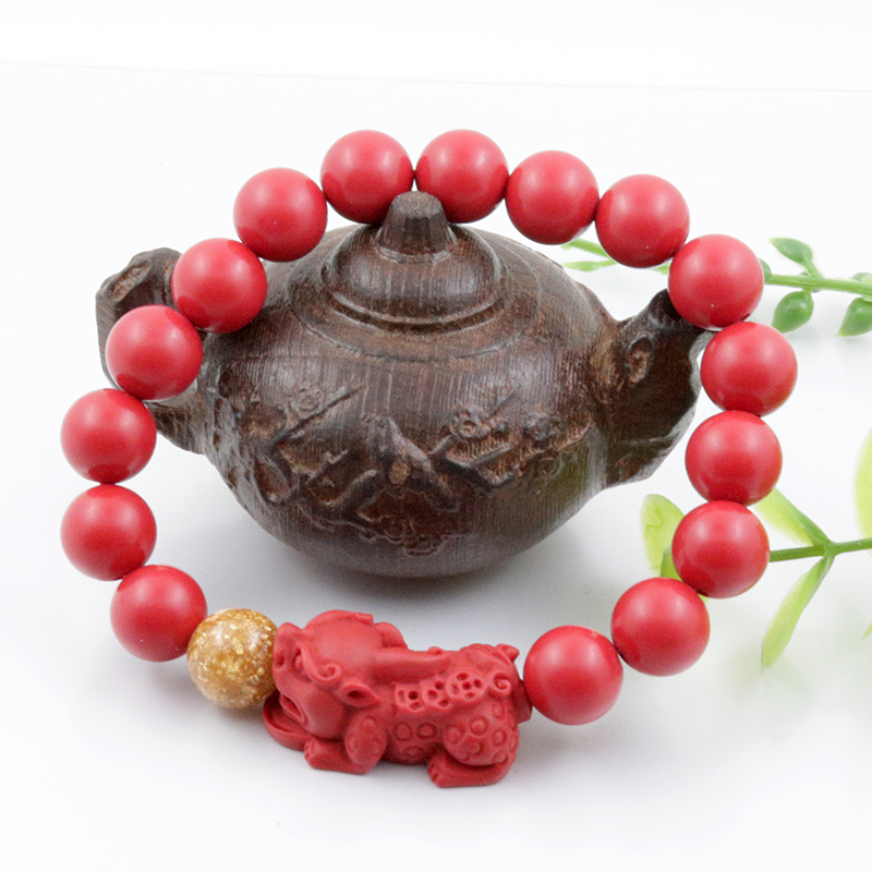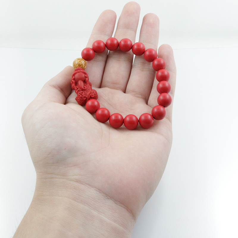 開光貔貅紅朱砂手鏈手串男款佛珠金箔招財轉運納福本命年飾品1入