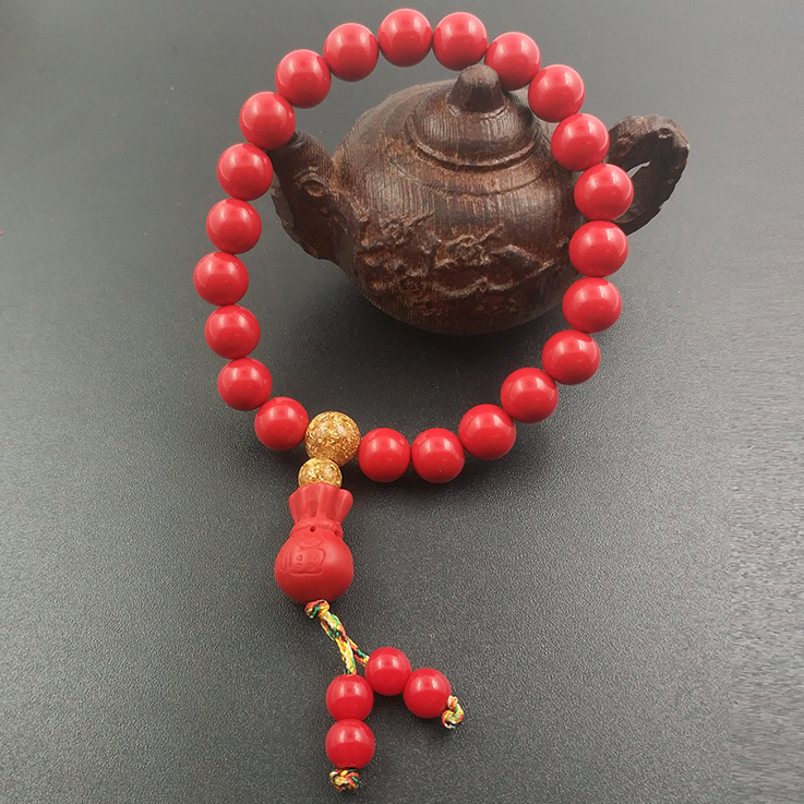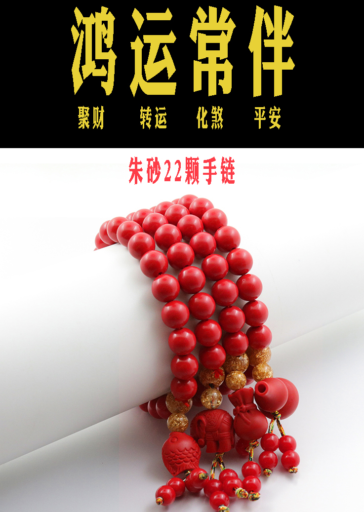 開光紅朱砂手鏈手串納福招財保平安轉運本命年手珠鏈飾品原創1入