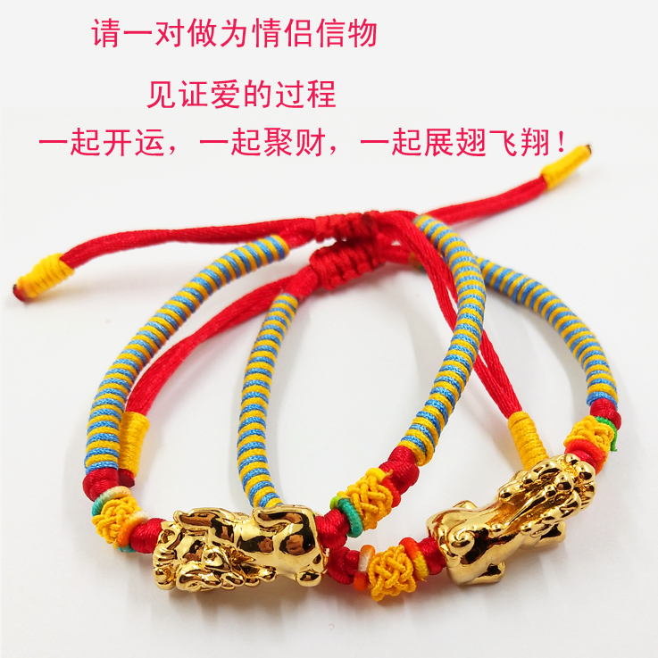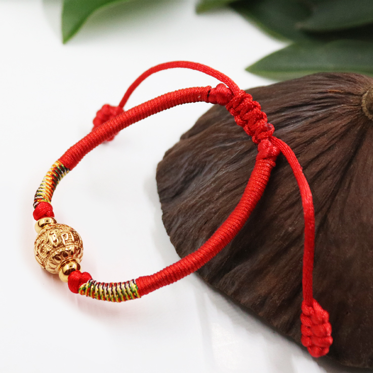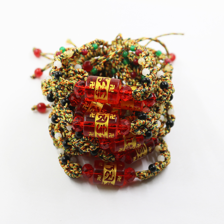 開運納福招財進寶本命年紅繩手繩手鏈貔貅六字真言珠手工編織多款1入