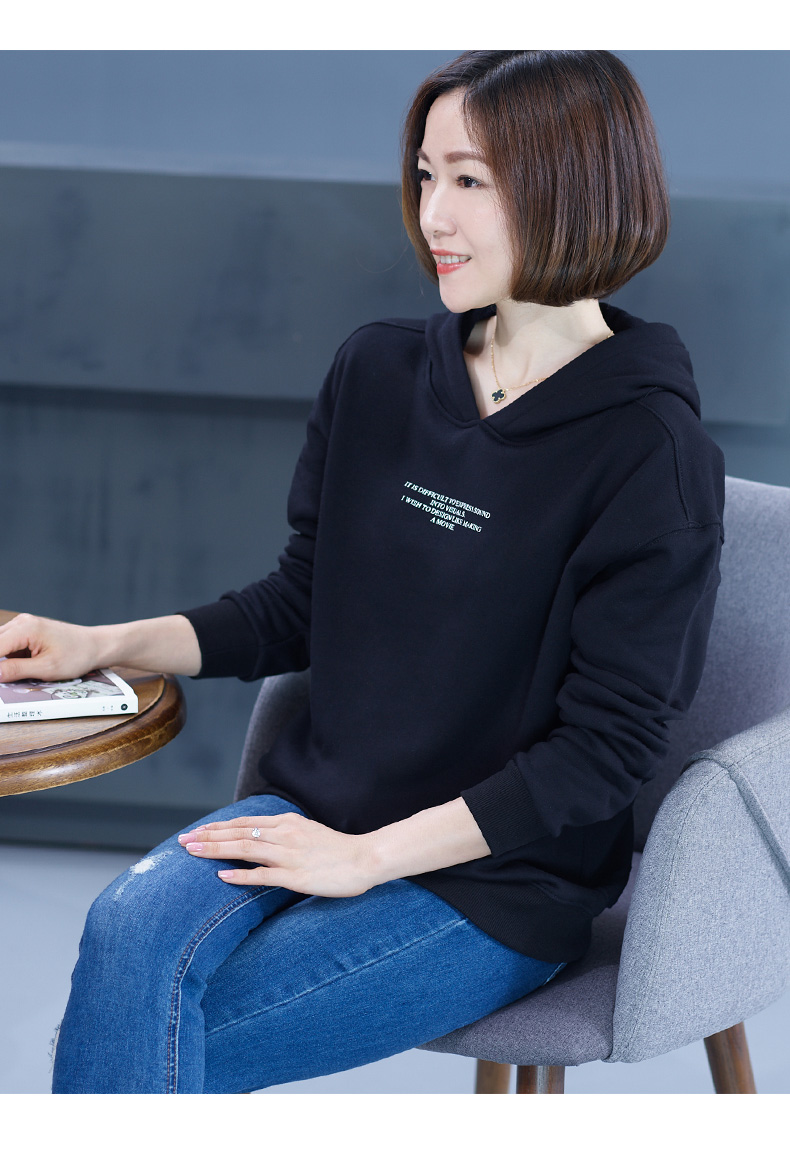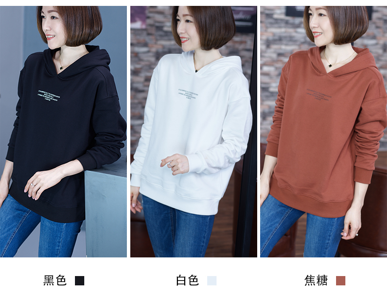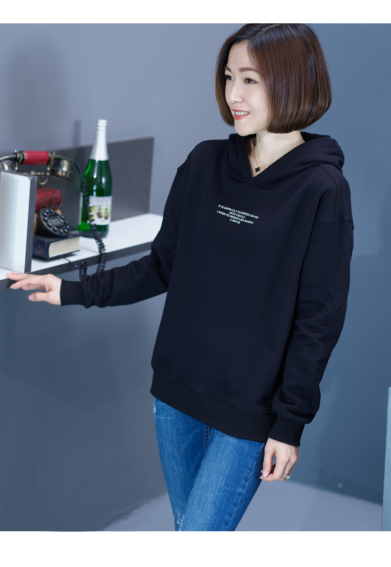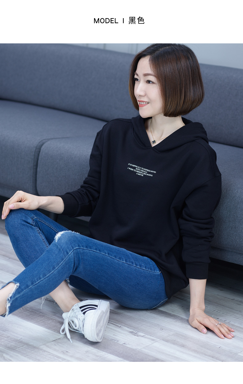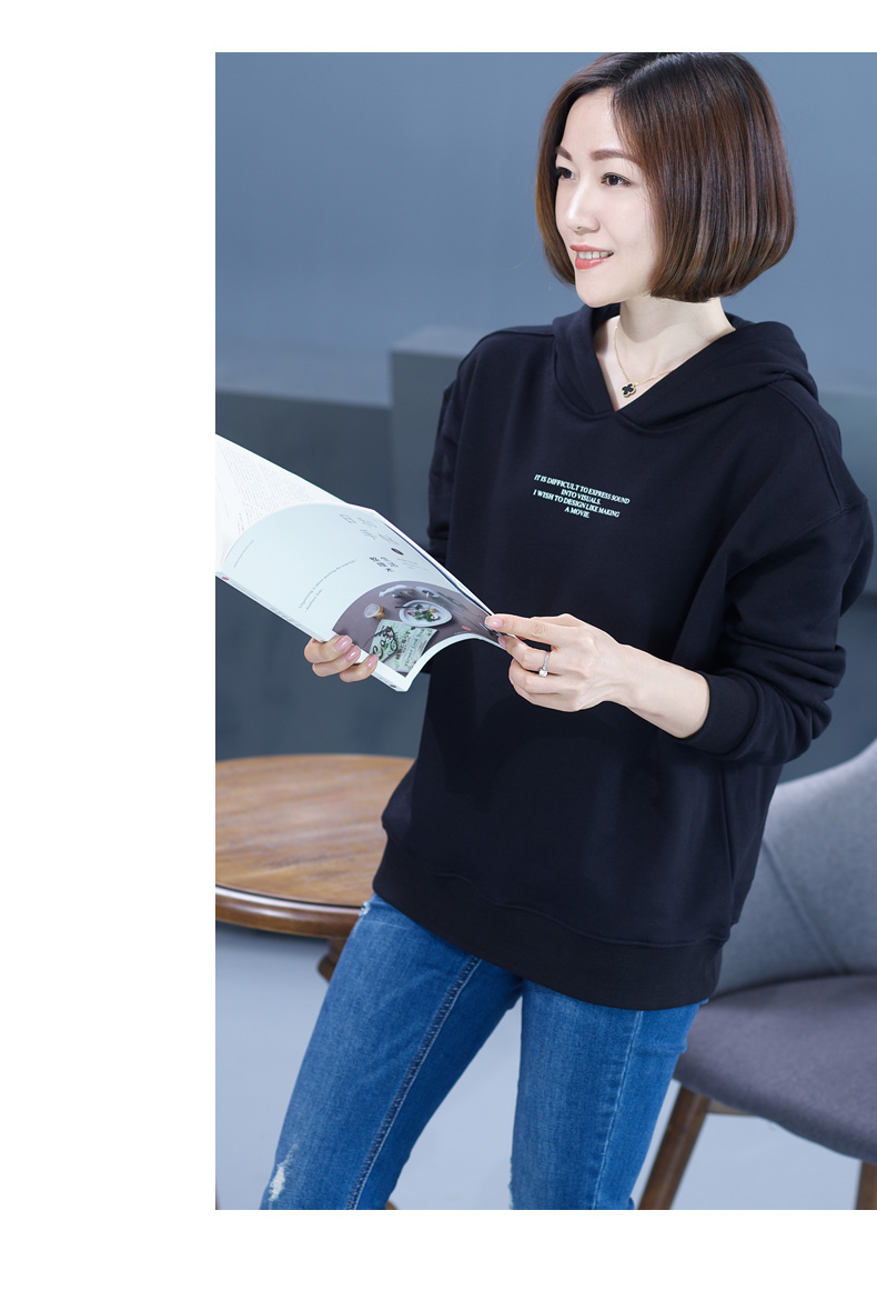 2019秋冬裝連帽加厚長袖寬松大碼女黑色衛衣純棉字母印花帽衫上衣1入