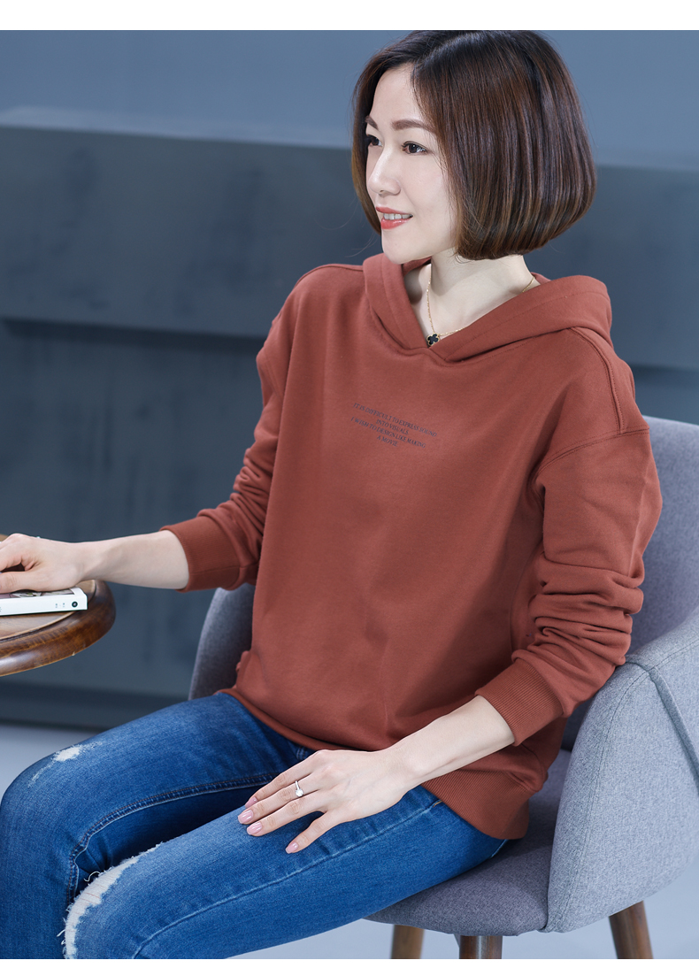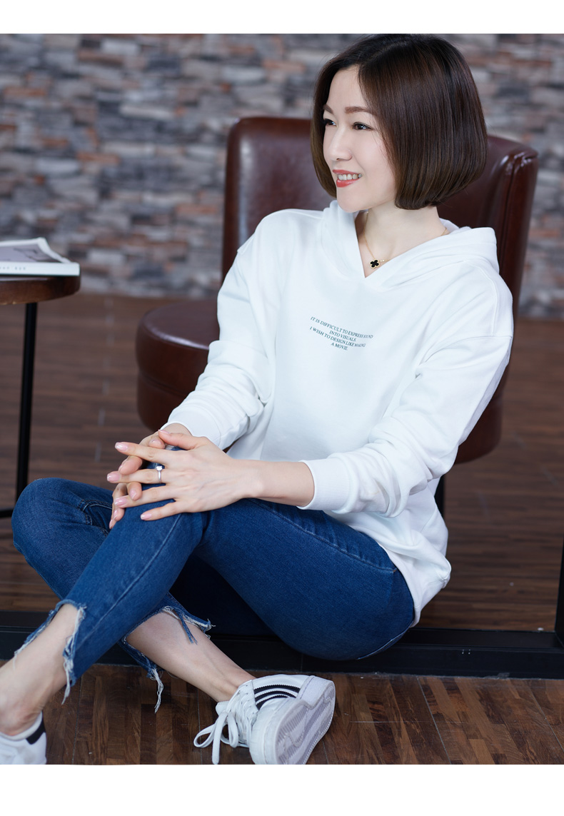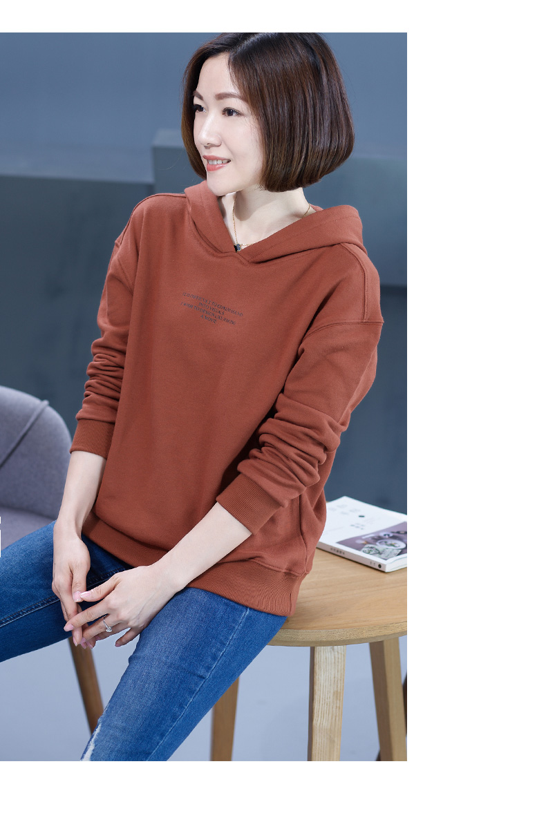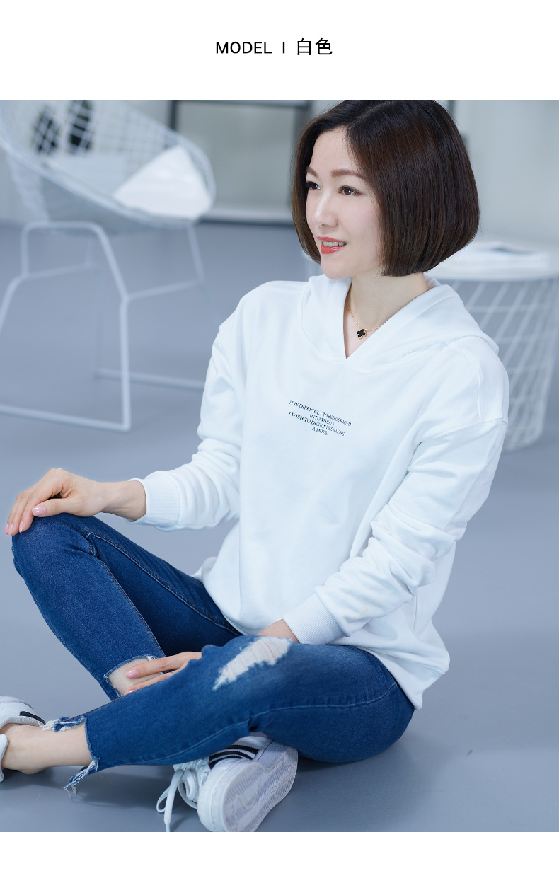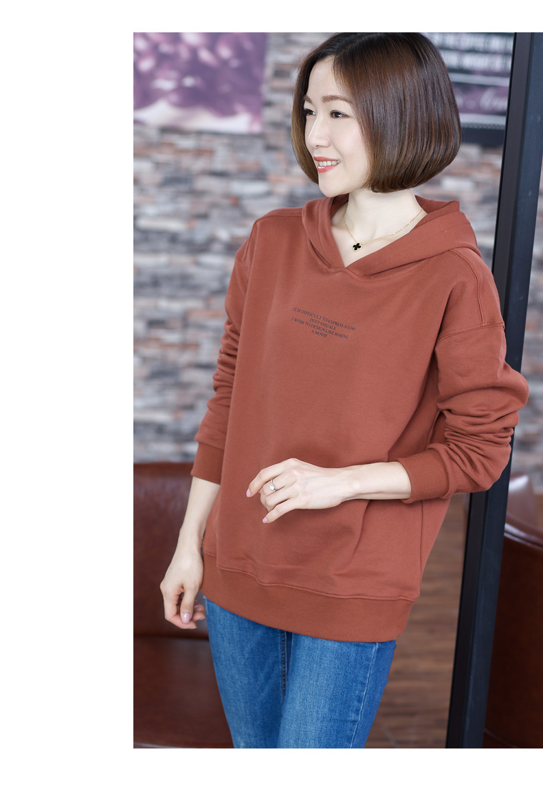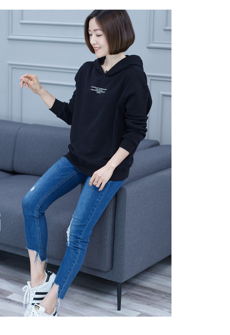 2019秋冬裝連帽加厚長袖寬松大碼女黑色衛衣純棉字母印花帽衫上衣1入