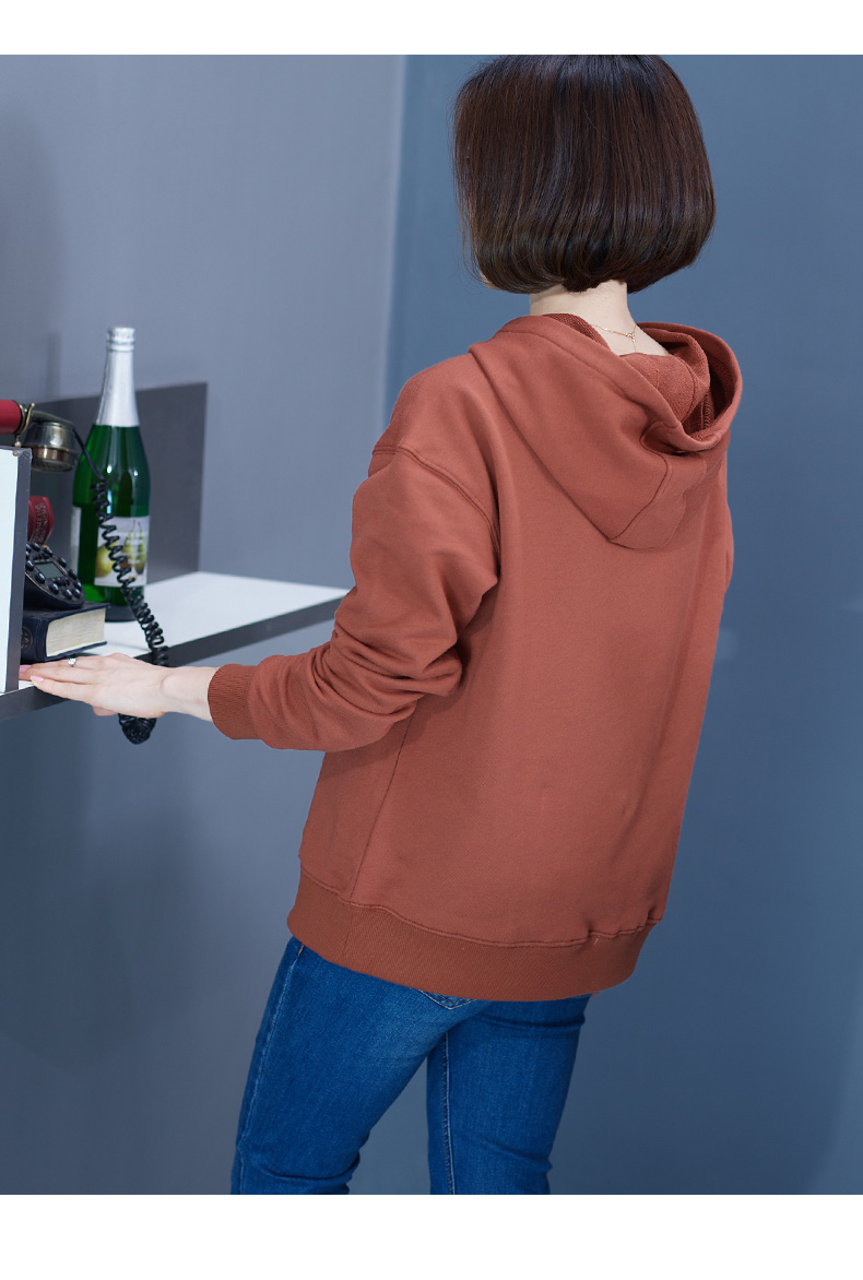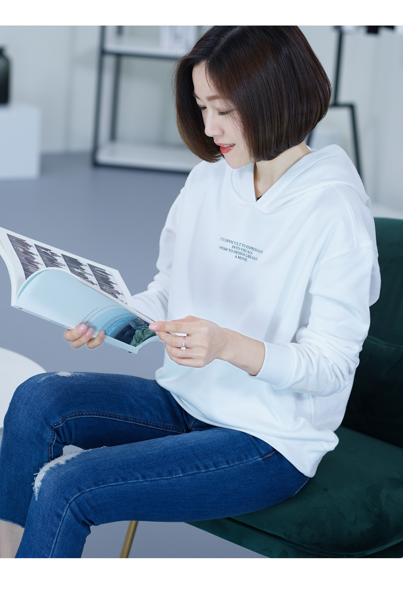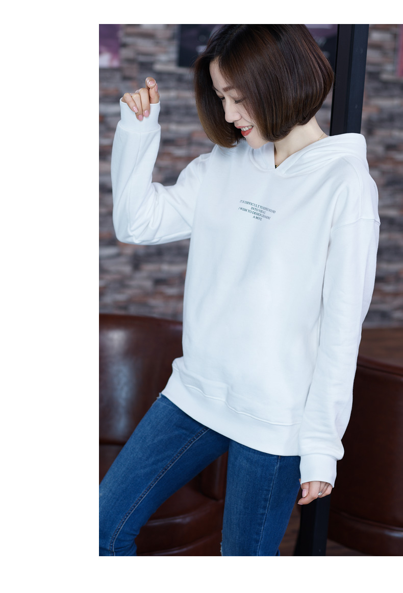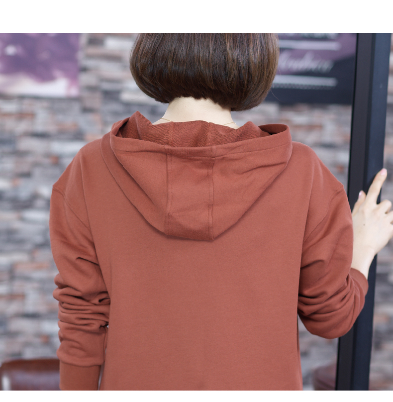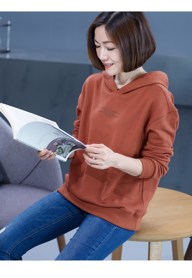 2019秋冬裝連帽加厚長袖寬松大碼女黑色衛衣純棉字母印花帽衫上衣1入