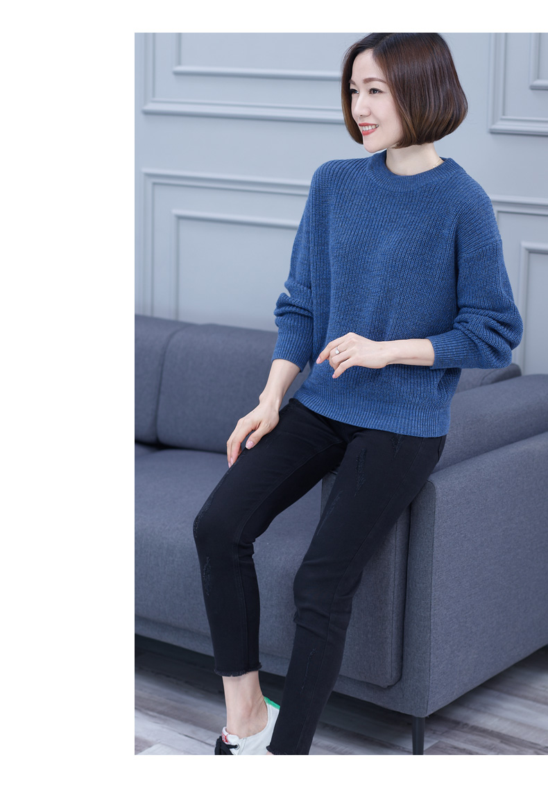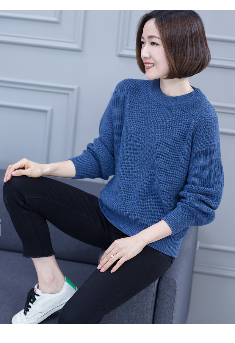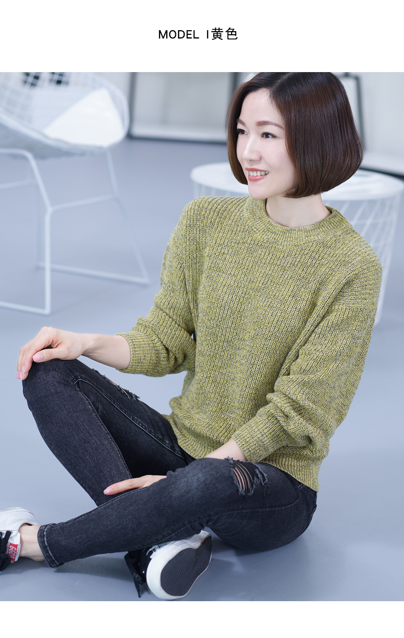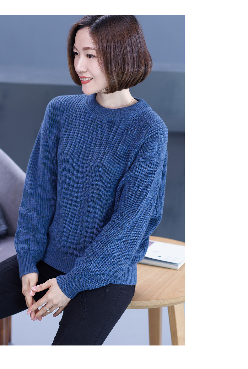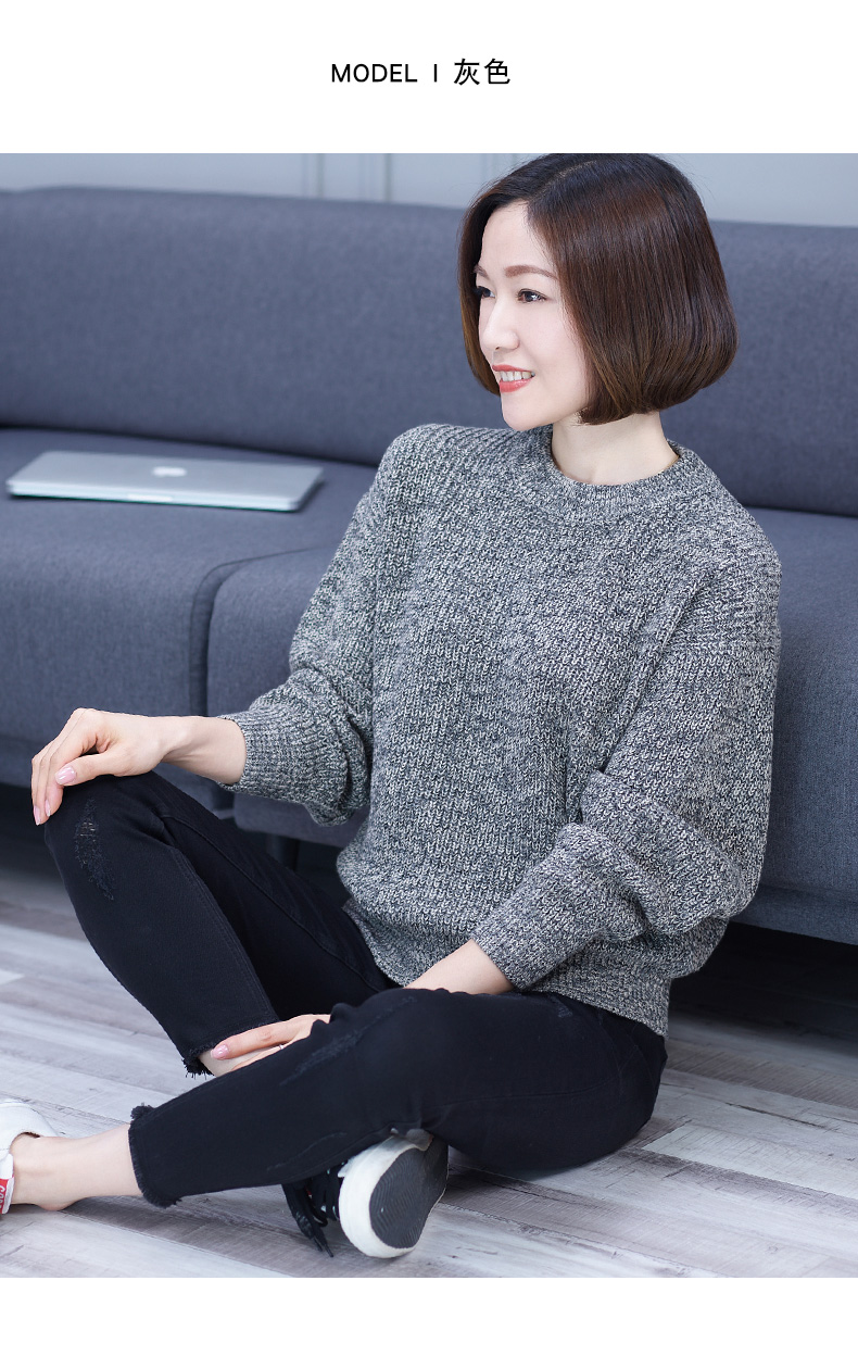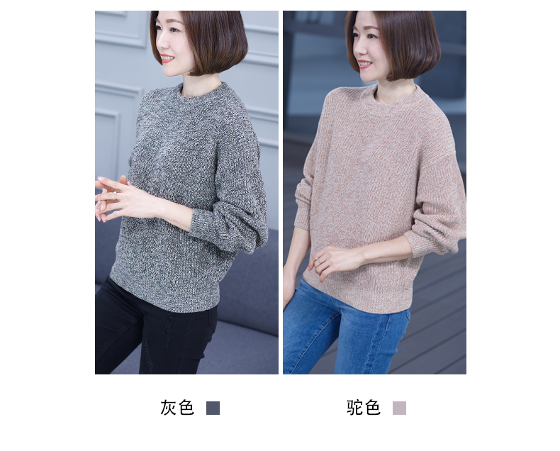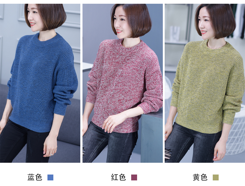 2019秋冬裝圓領長袖休閑寬松大碼女裝純色針織衫套頭毛衣上衣外穿1入