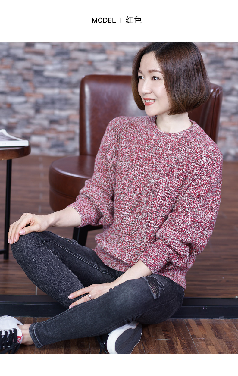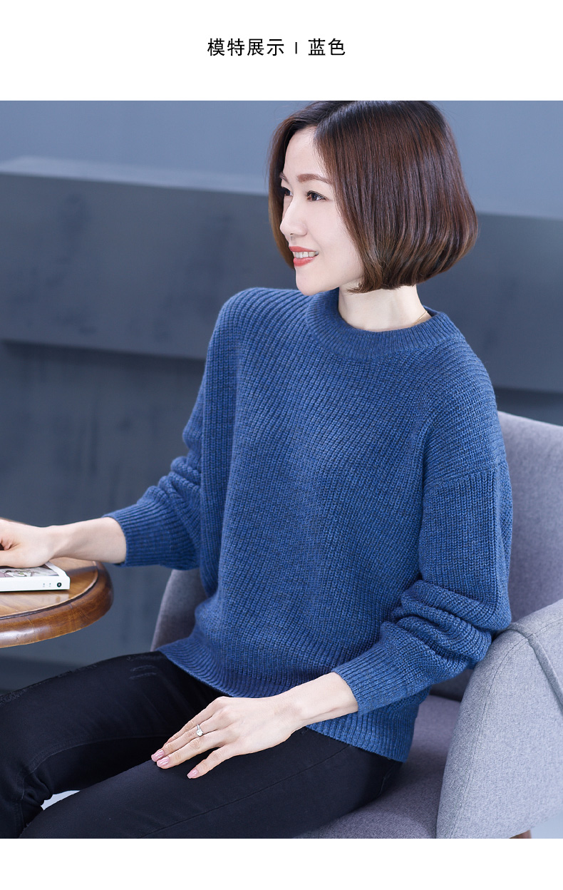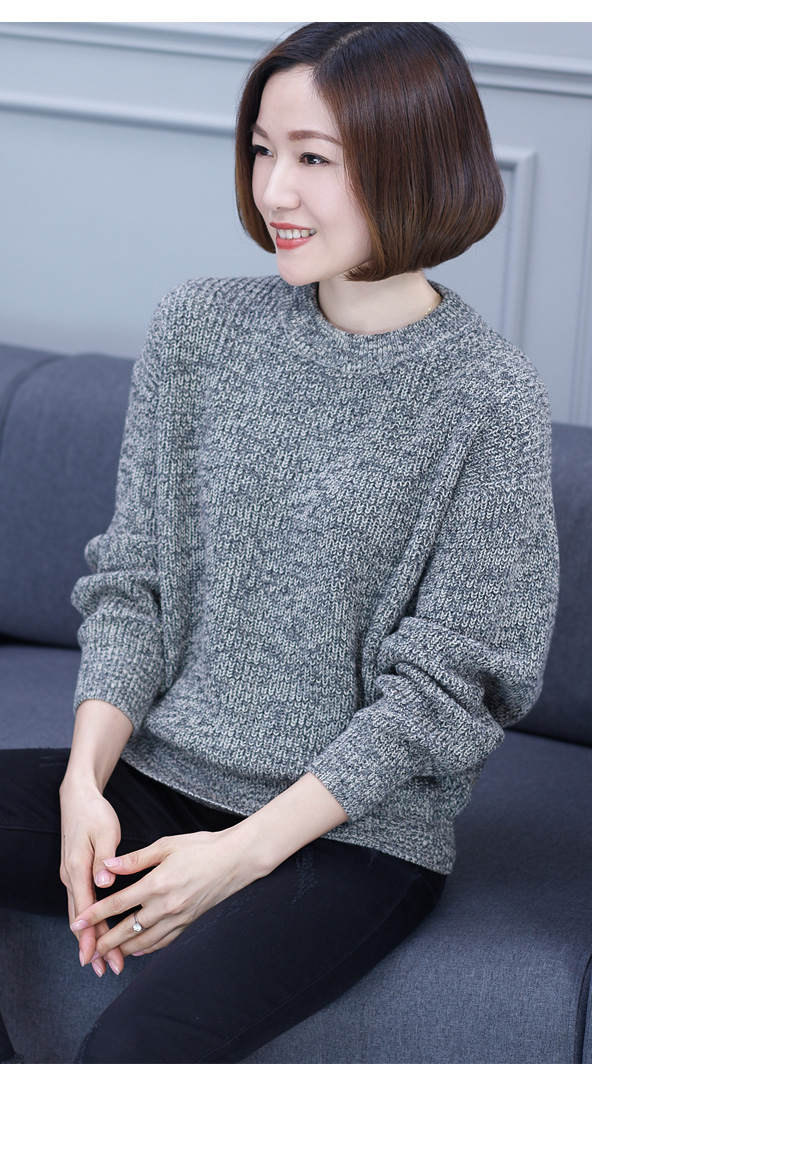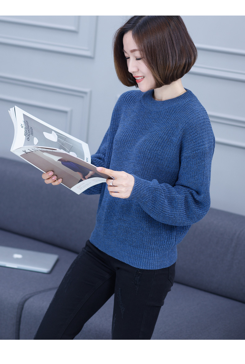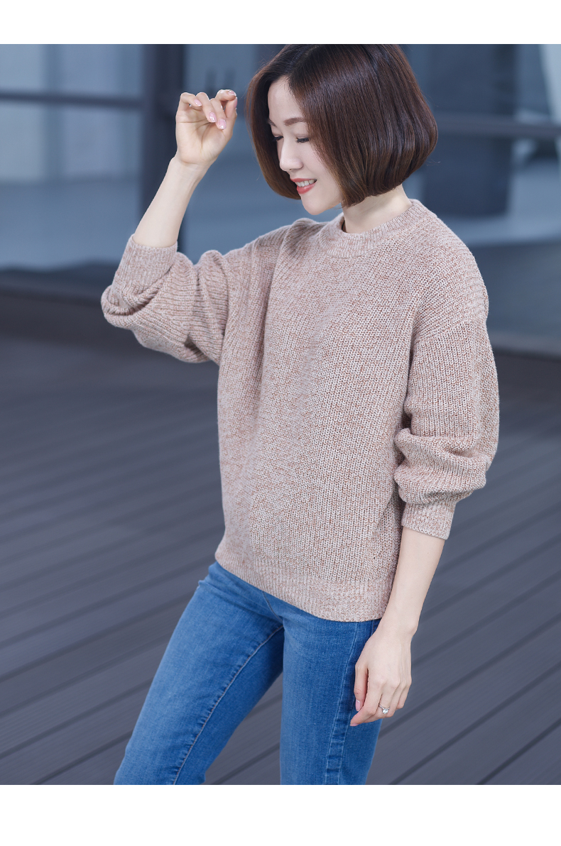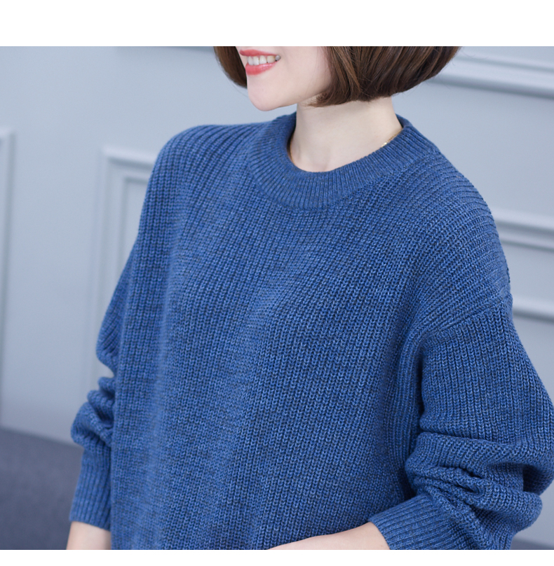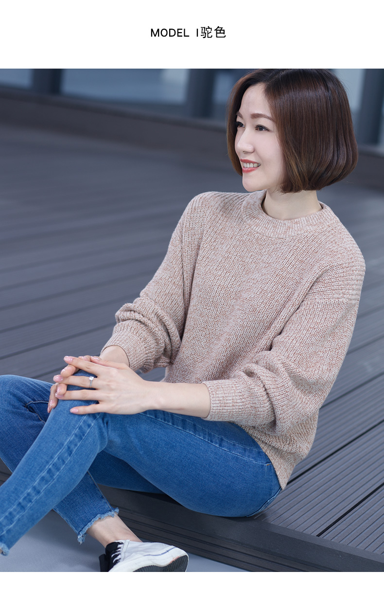 2019秋冬裝圓領長袖休閑寬松大碼女裝純色針織衫套頭毛衣上衣外穿1入