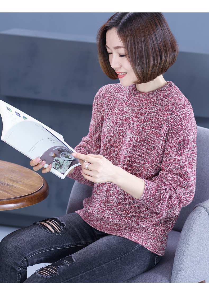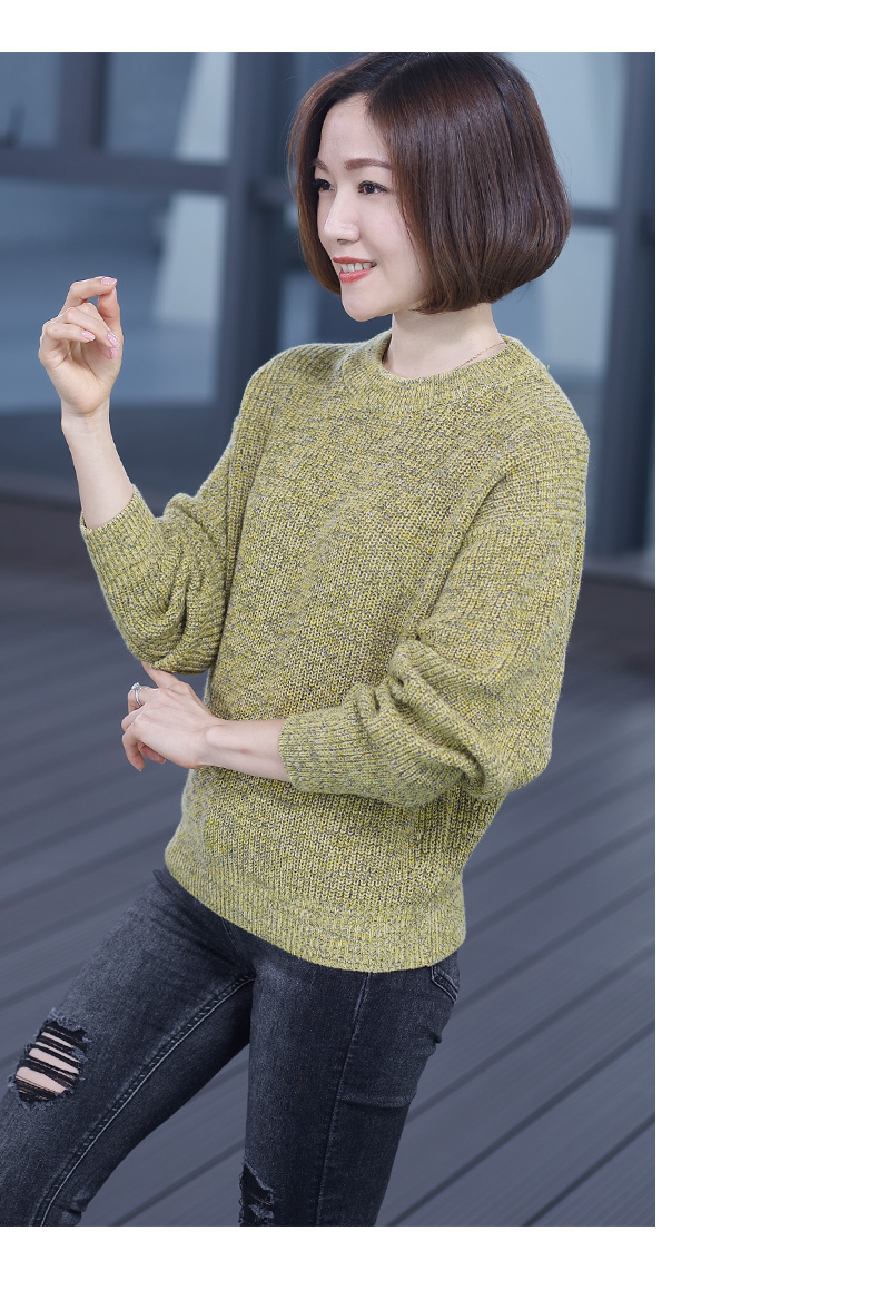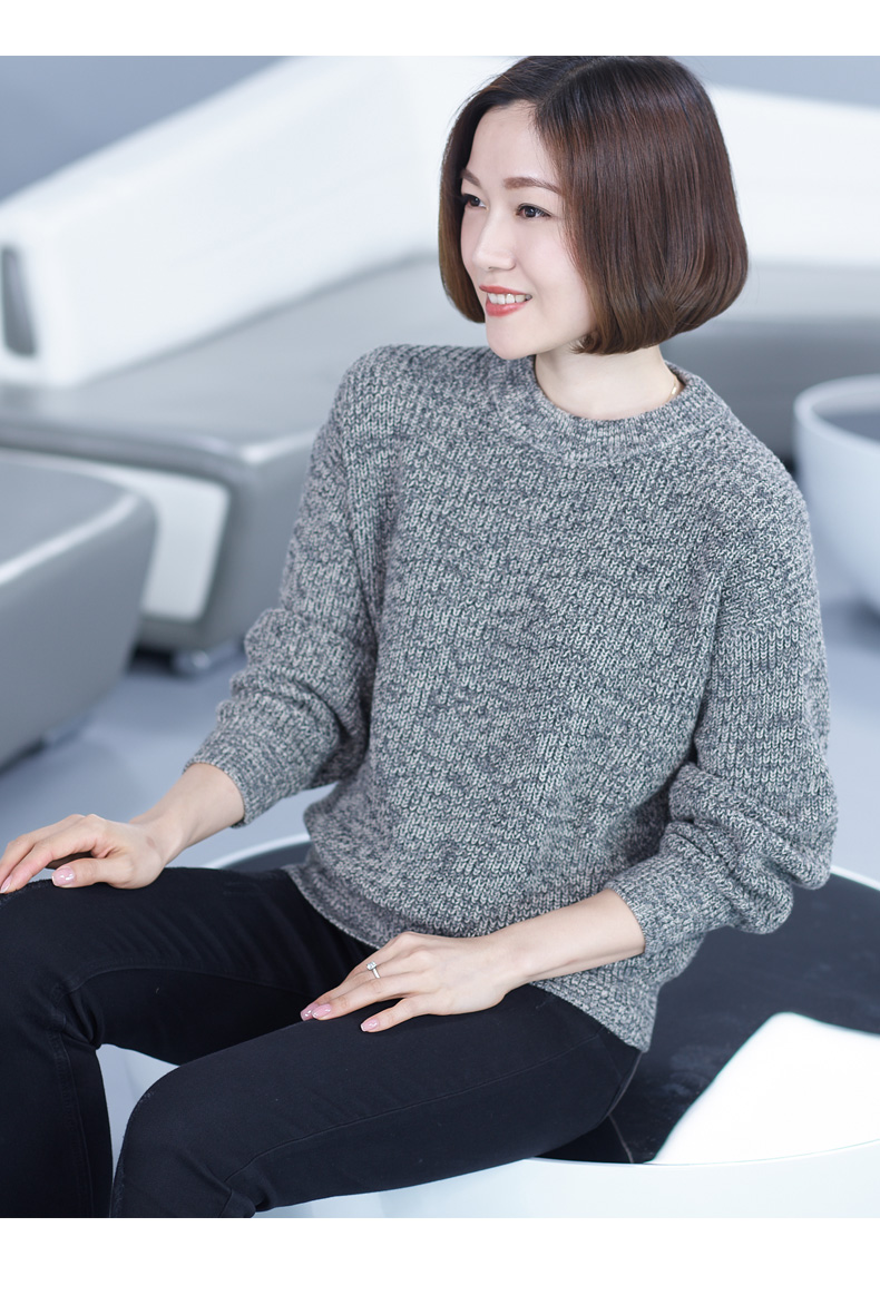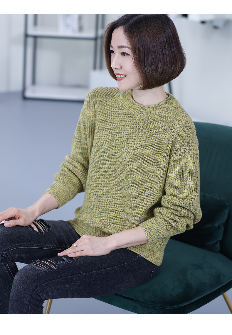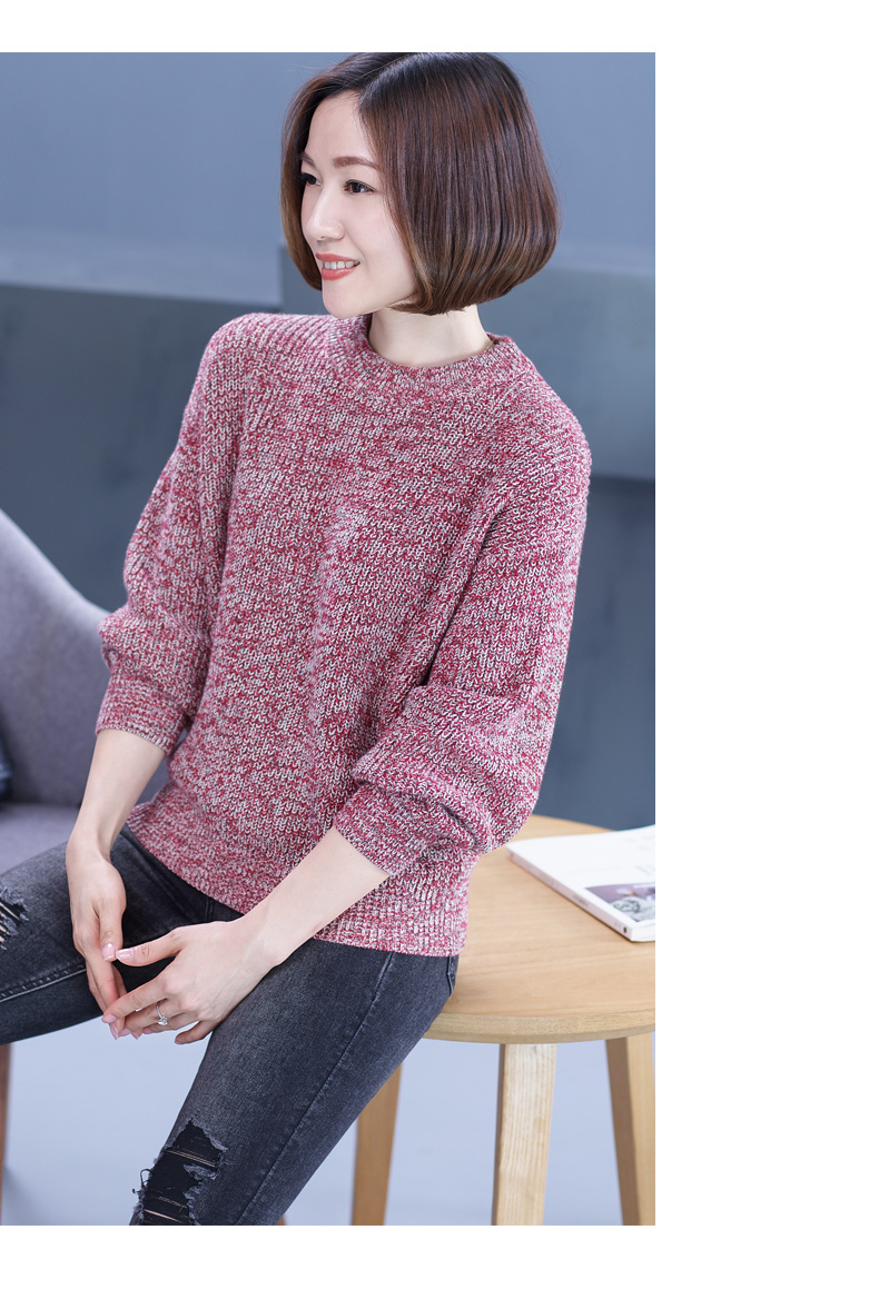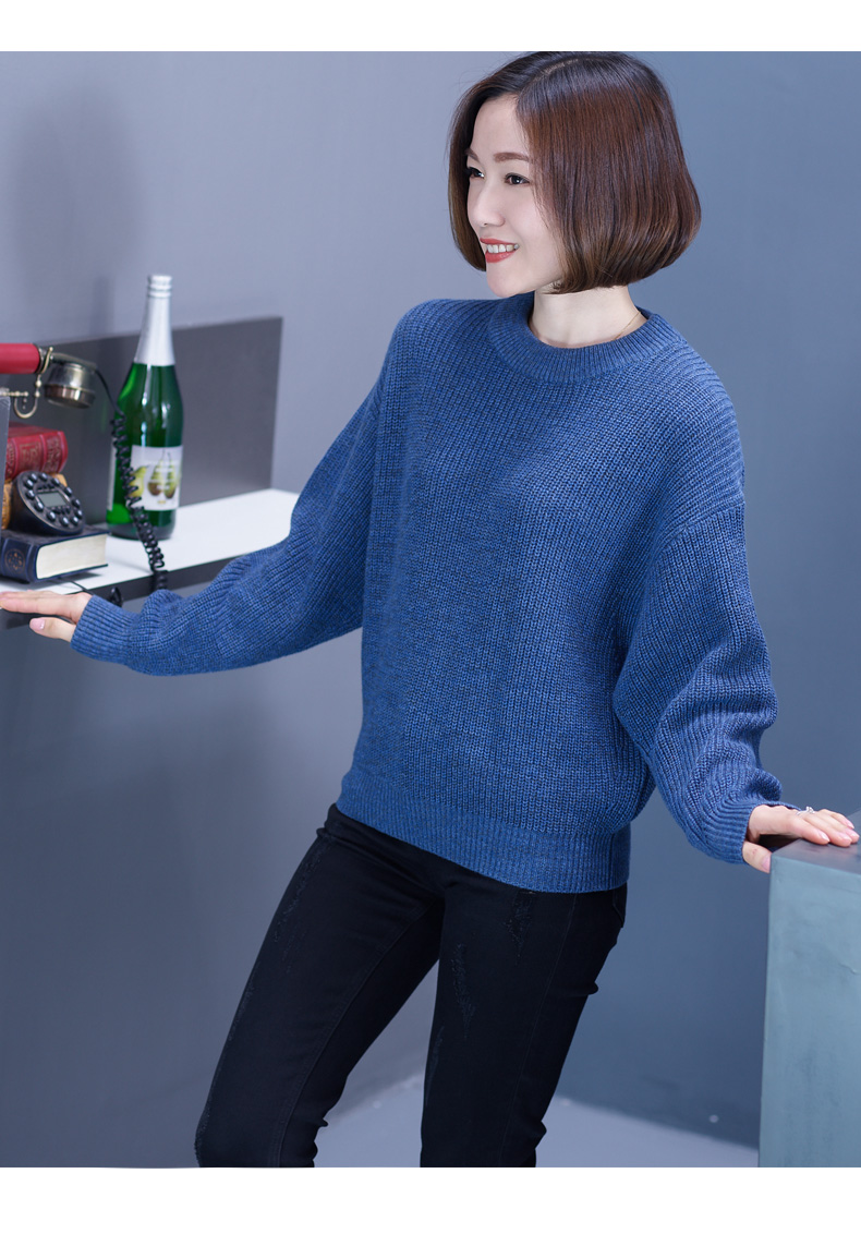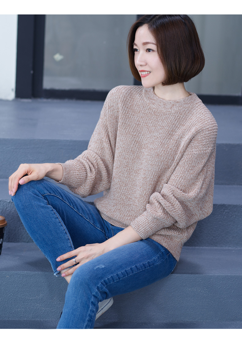 2019秋冬裝圓領長袖休閑寬松大碼女裝純色針織衫套頭毛衣上衣外穿1入
