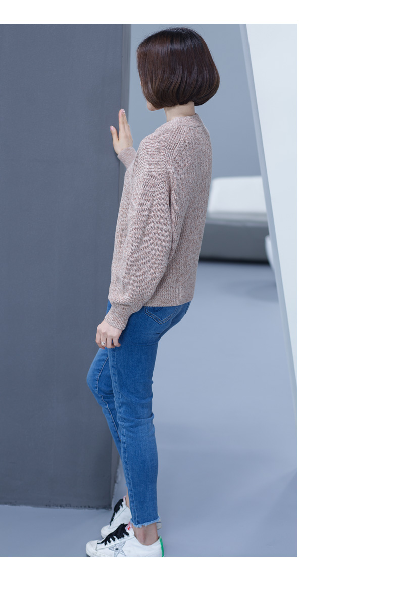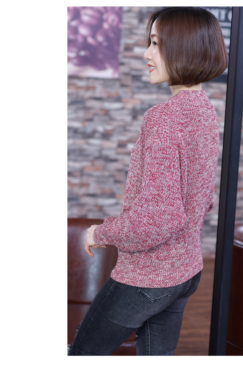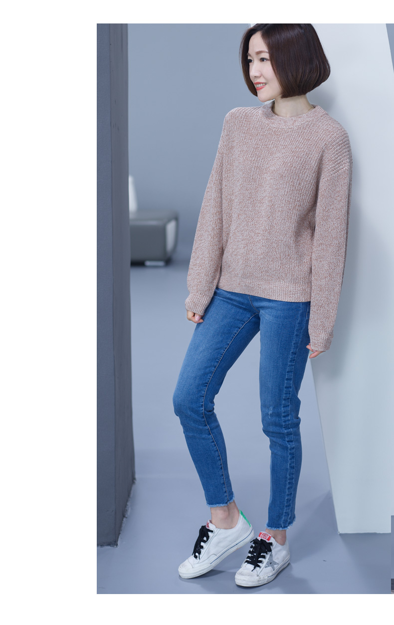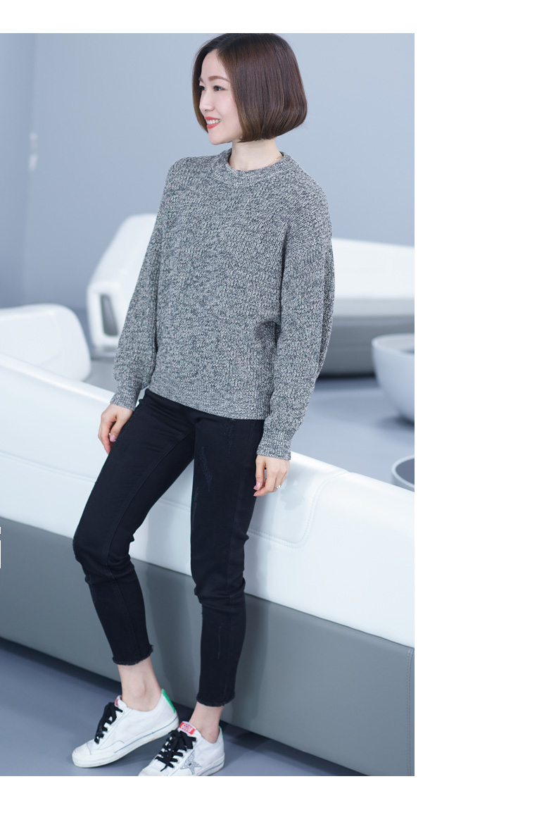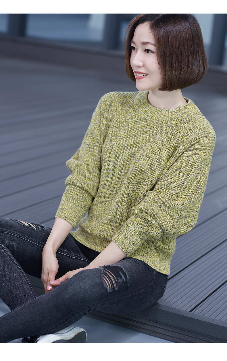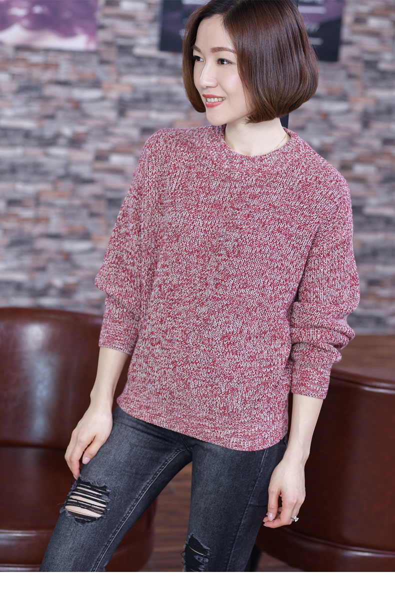 2019秋冬裝圓領長袖休閑寬松大碼女裝純色針織衫套頭毛衣上衣外穿1入