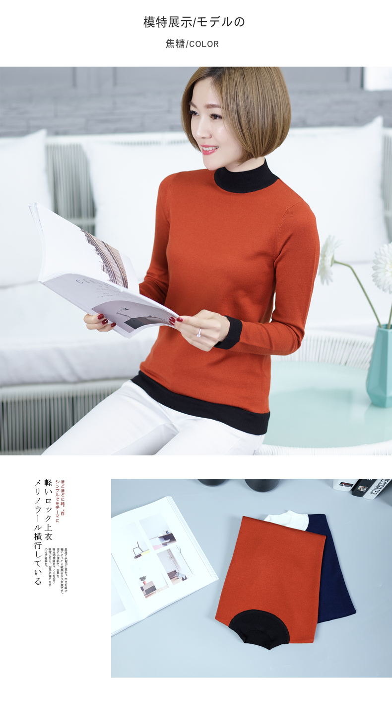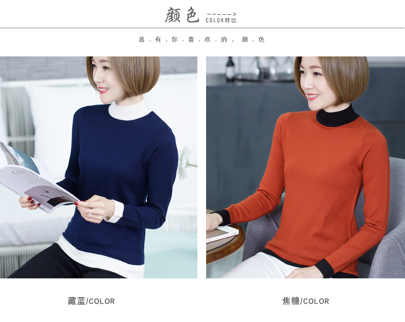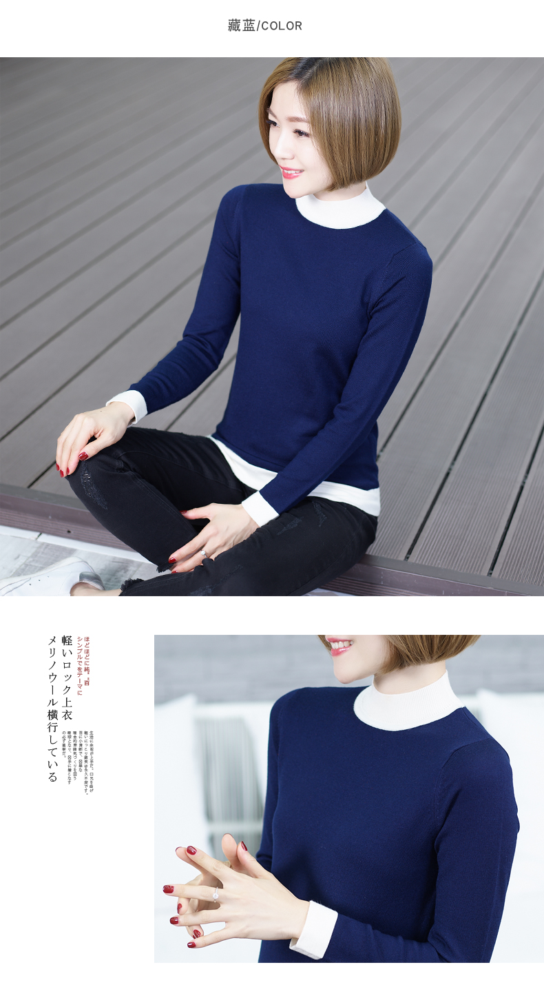 韓版女裝2019秋裝半高領針織衫寬松羊毛衣純色長袖打底衫上衣服1入