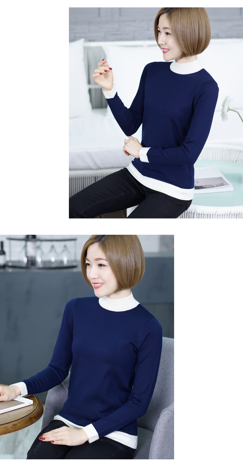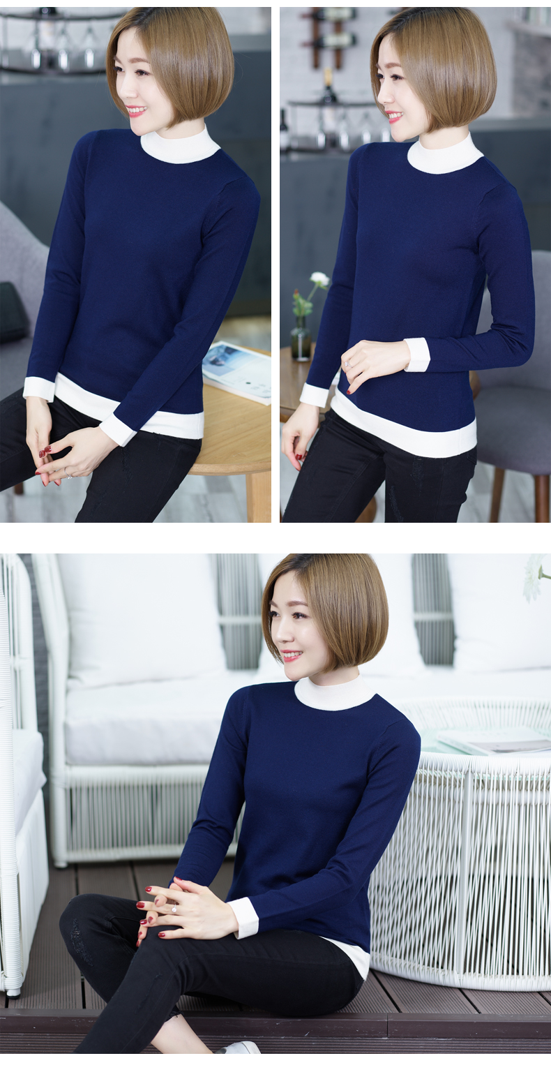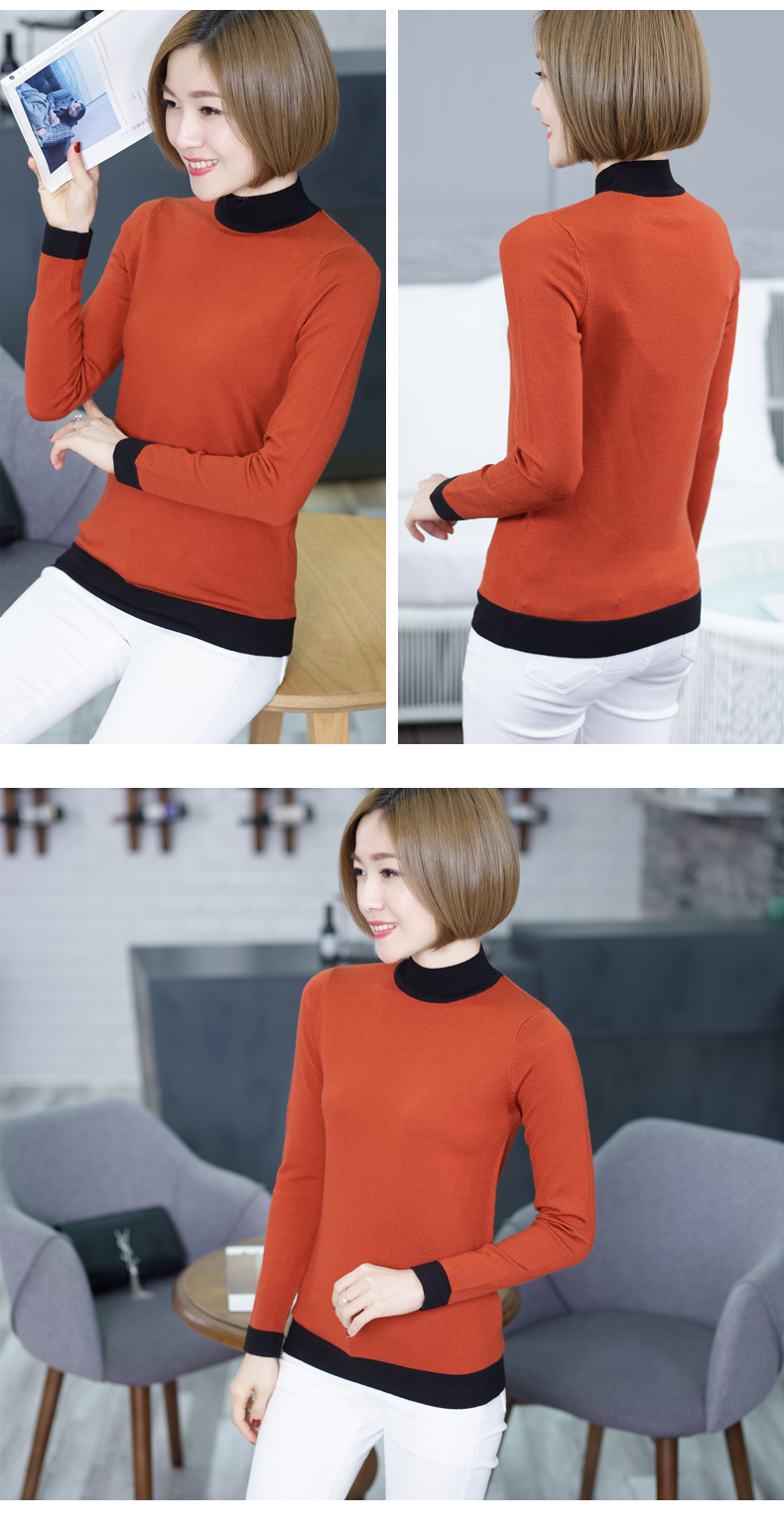 韓版女裝2019秋裝半高領針織衫寬松羊毛衣純色長袖打底衫上衣服1入