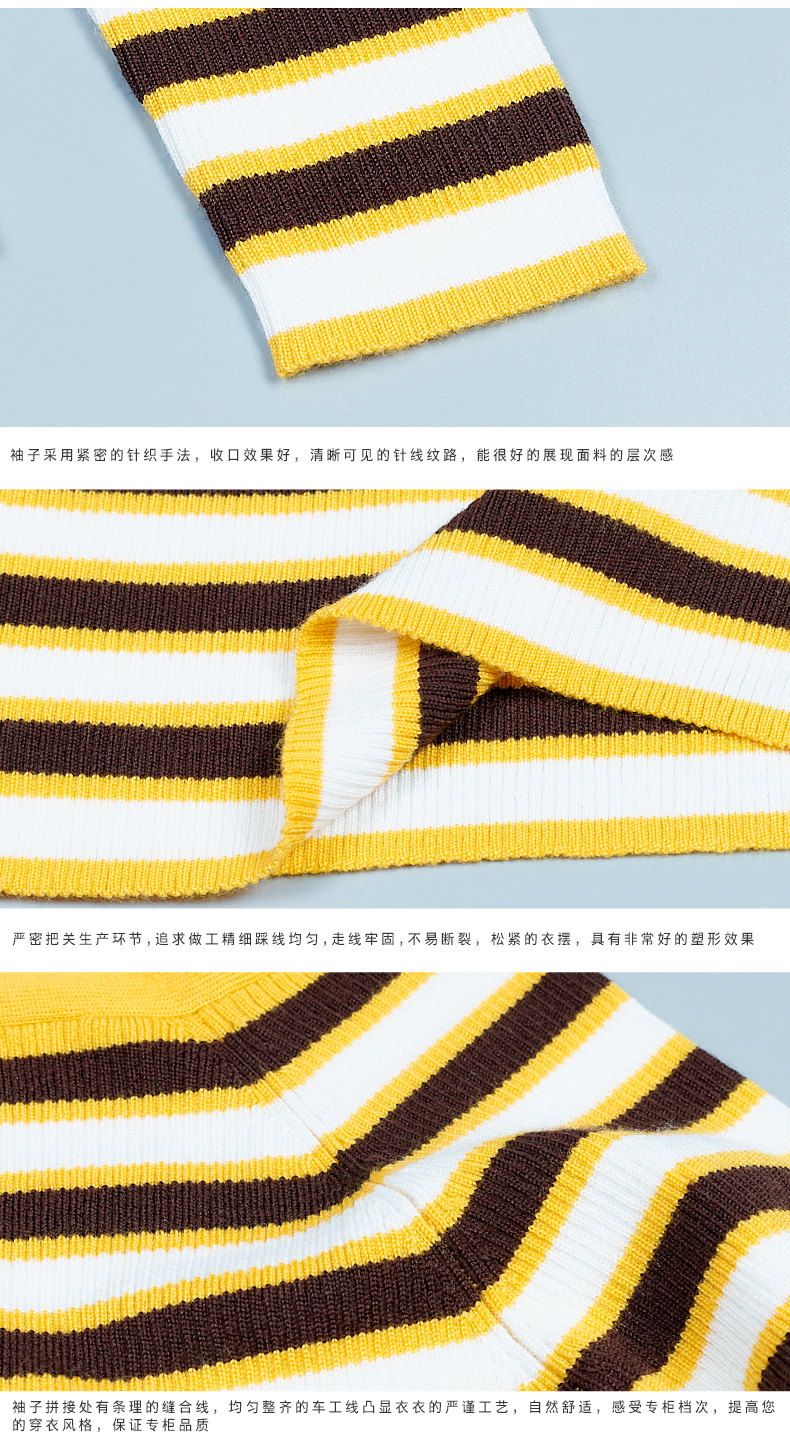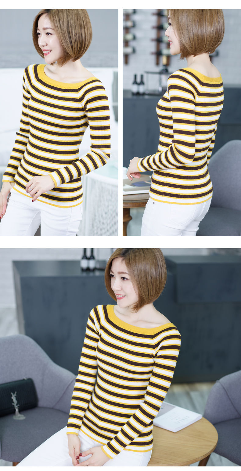 2019秋裝新款一字領針織衫女裝修身韓版條紋長袖上衣羊毛衣打底衫1入
